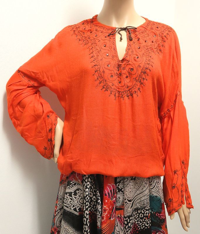 モロッコのバルーンチュニック☆オレンジ✕ブラウン☆