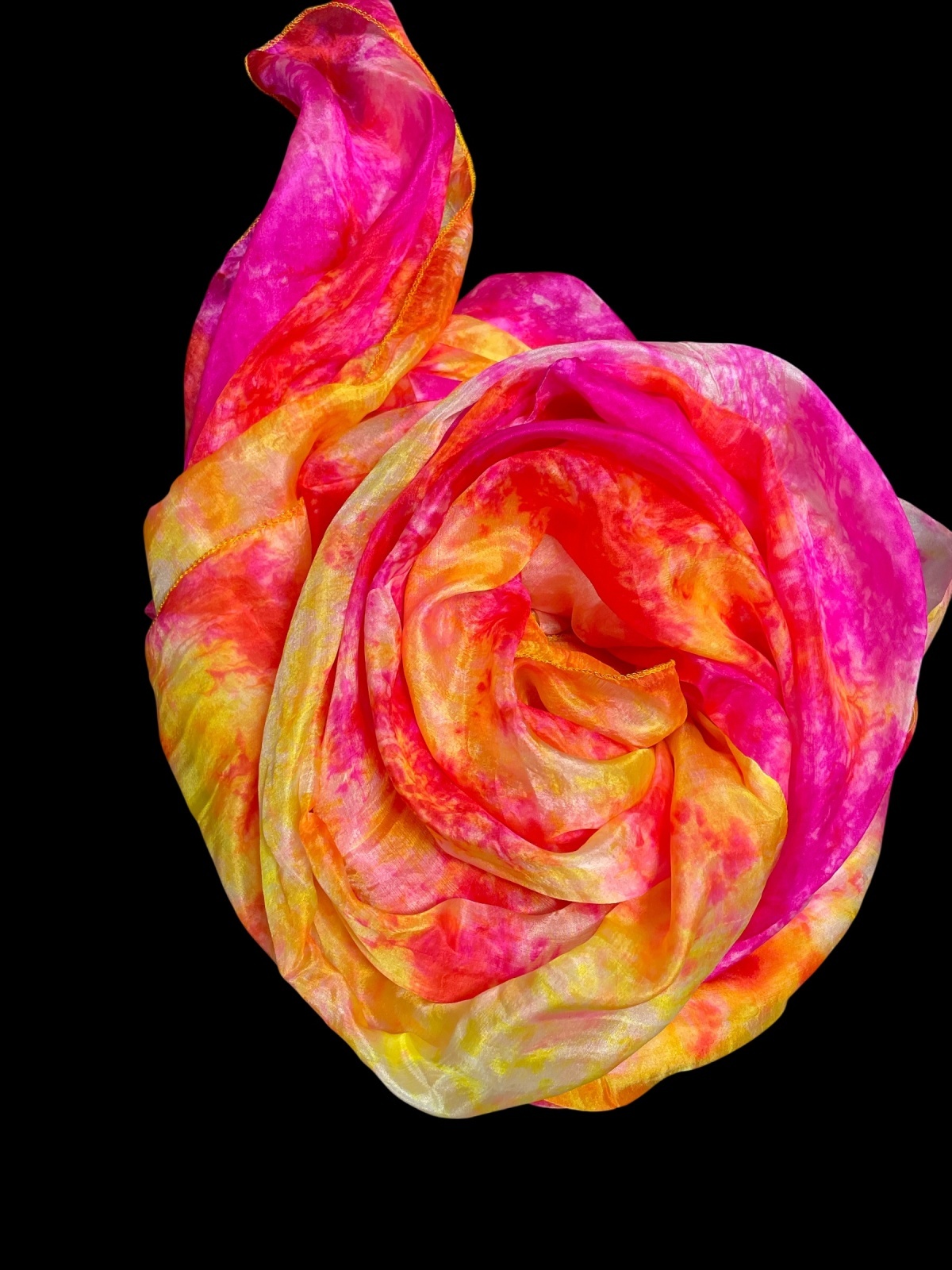 5mm habotaiシルクベール☆タイダイ(ムラ染め)☆Fuchsia X orange X yellow ☆