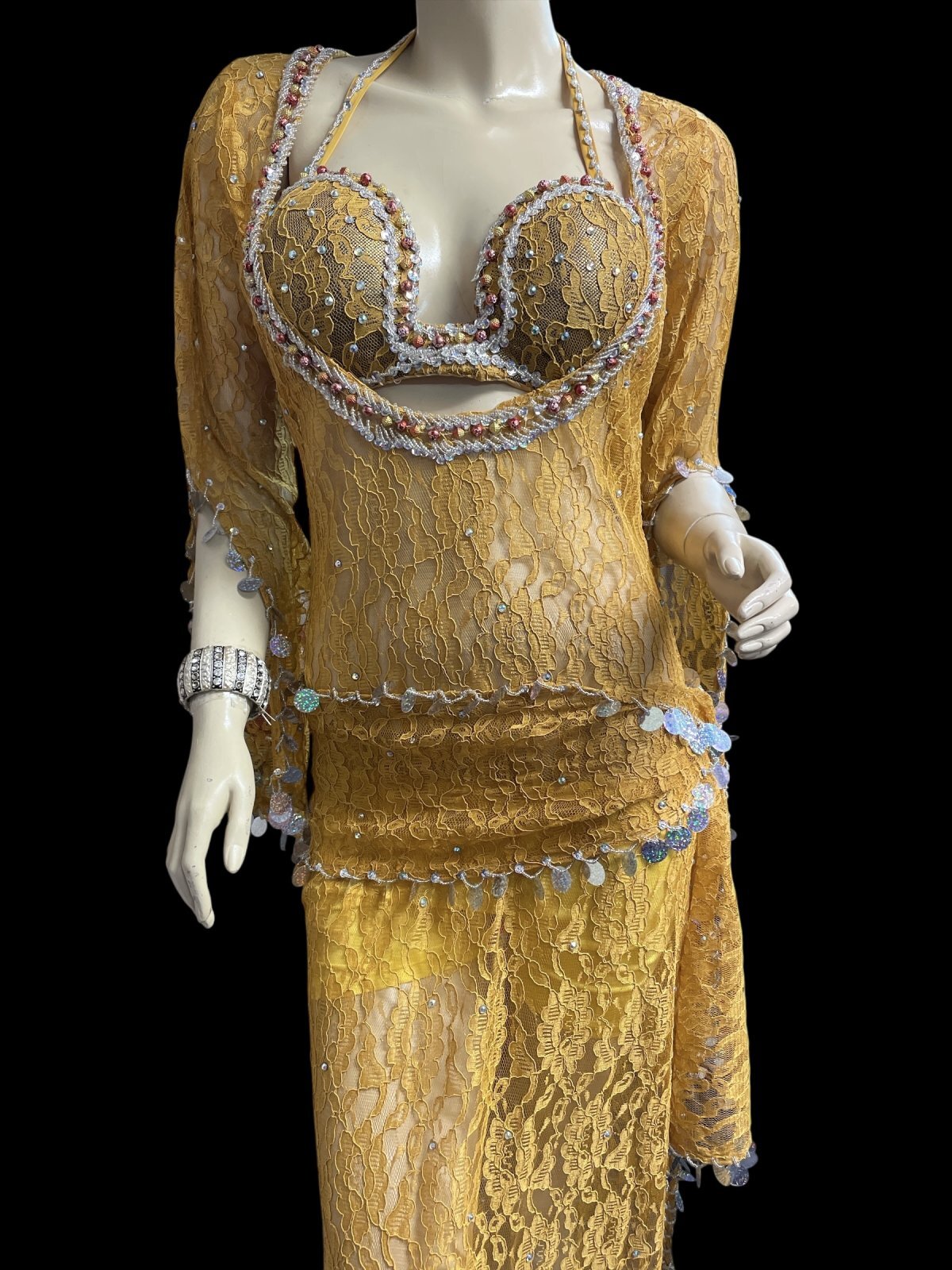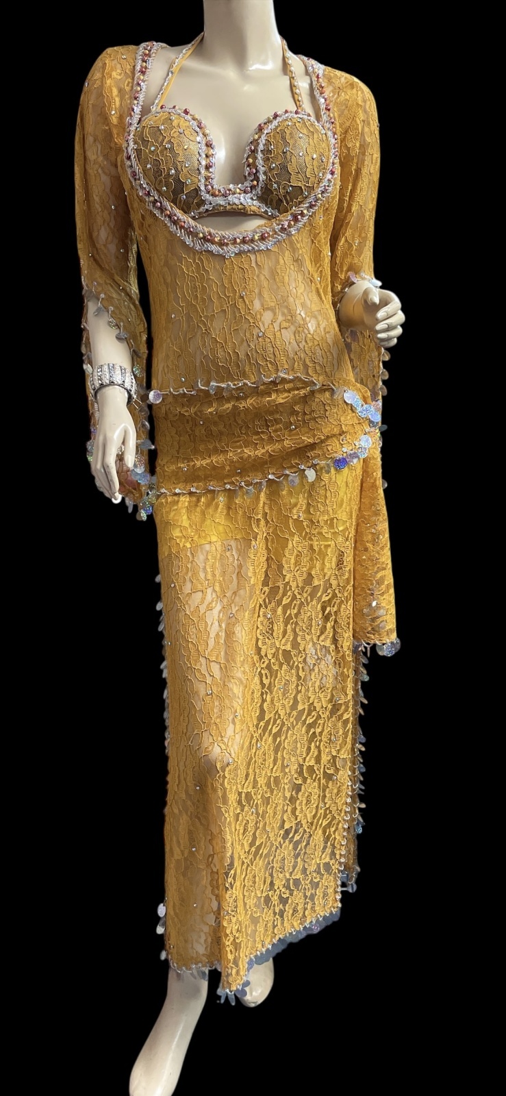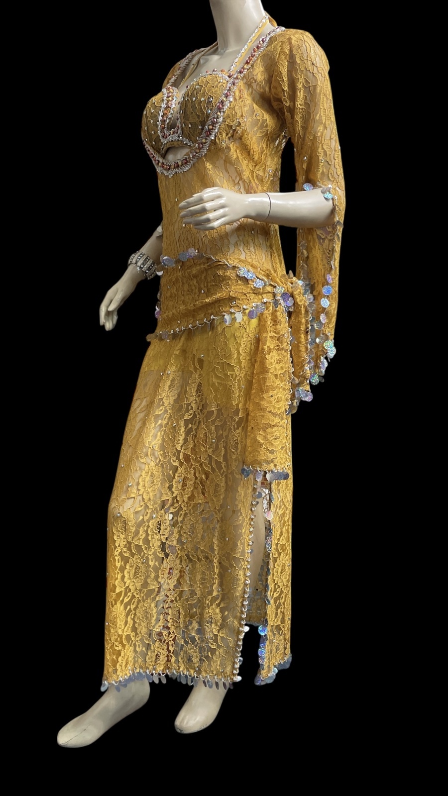 エジプト製ロマンティックレースサイーディ/ バラディドレス☆Mustard ☆