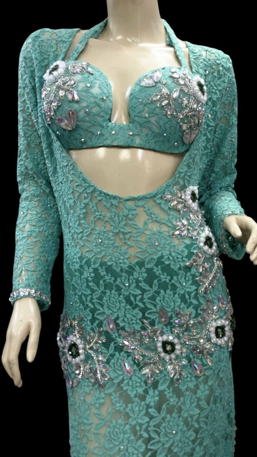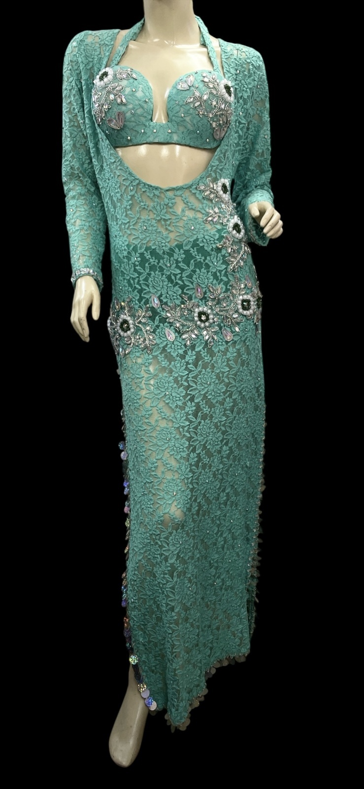 エジプト製ロマンティックレースサイーディ/ バラディドレス☆emerald green ☆
