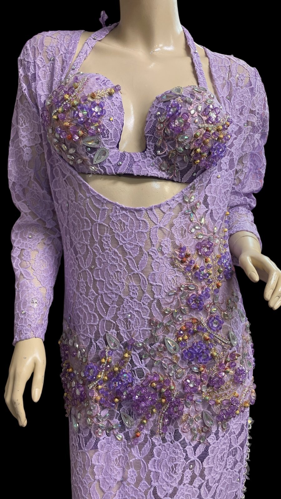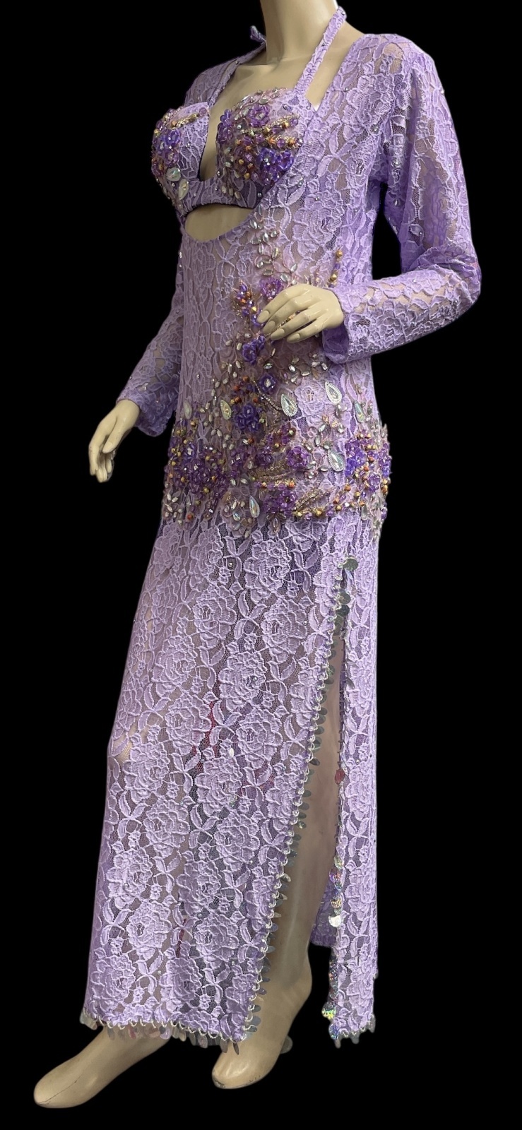 エジプト製ロマンティックレースサイーディ/ バラディドレス☆Lavender ☆