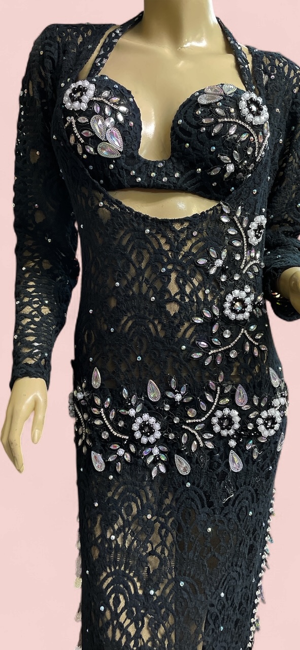 エジプト製ロマンティックレースサイーディ/ バラディドレス☆black ☆