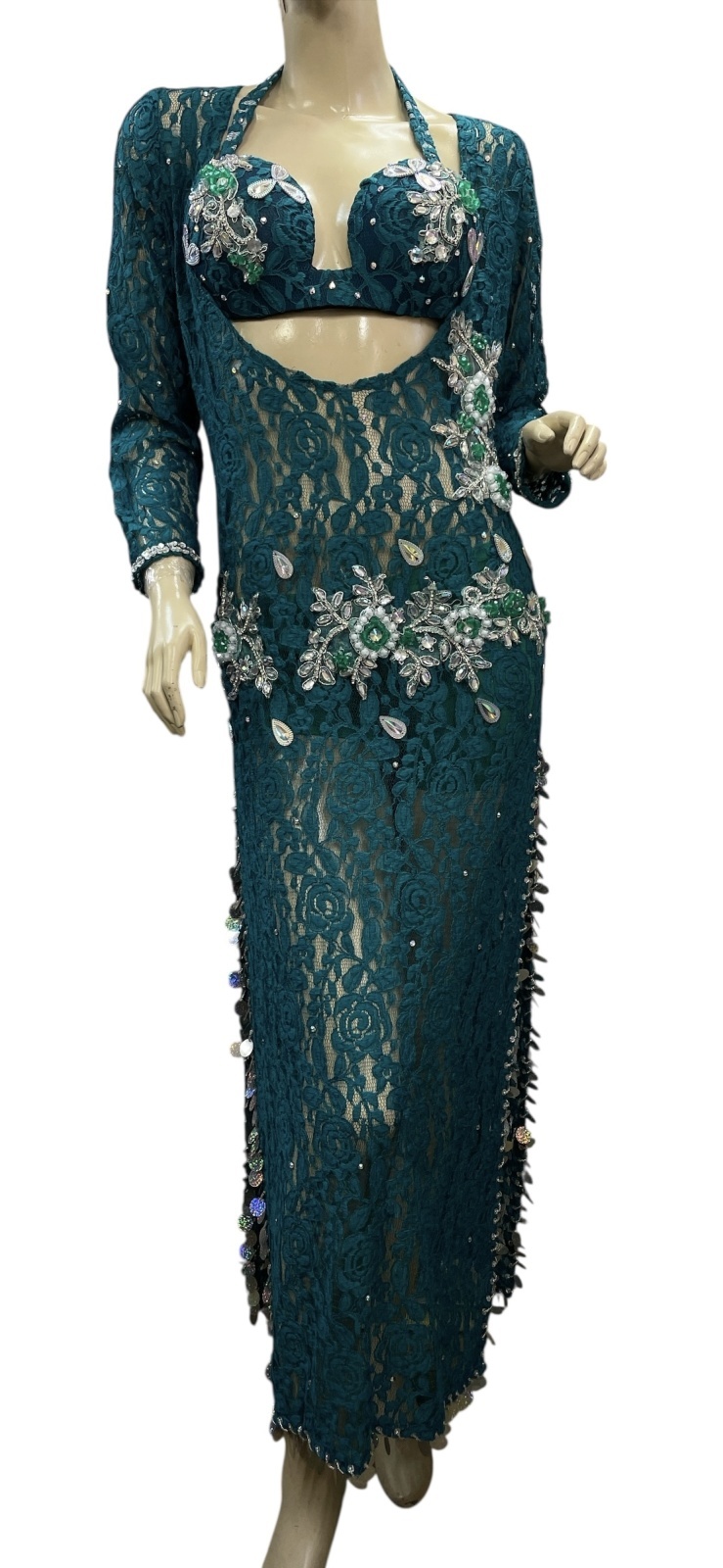 エジプト製ロマンティックレースサイーディ/ バラディドレス☆dark green ☆