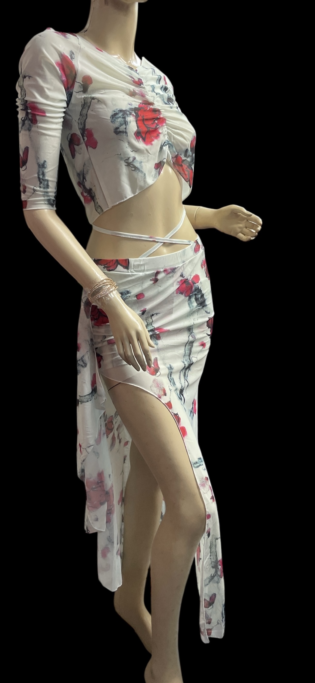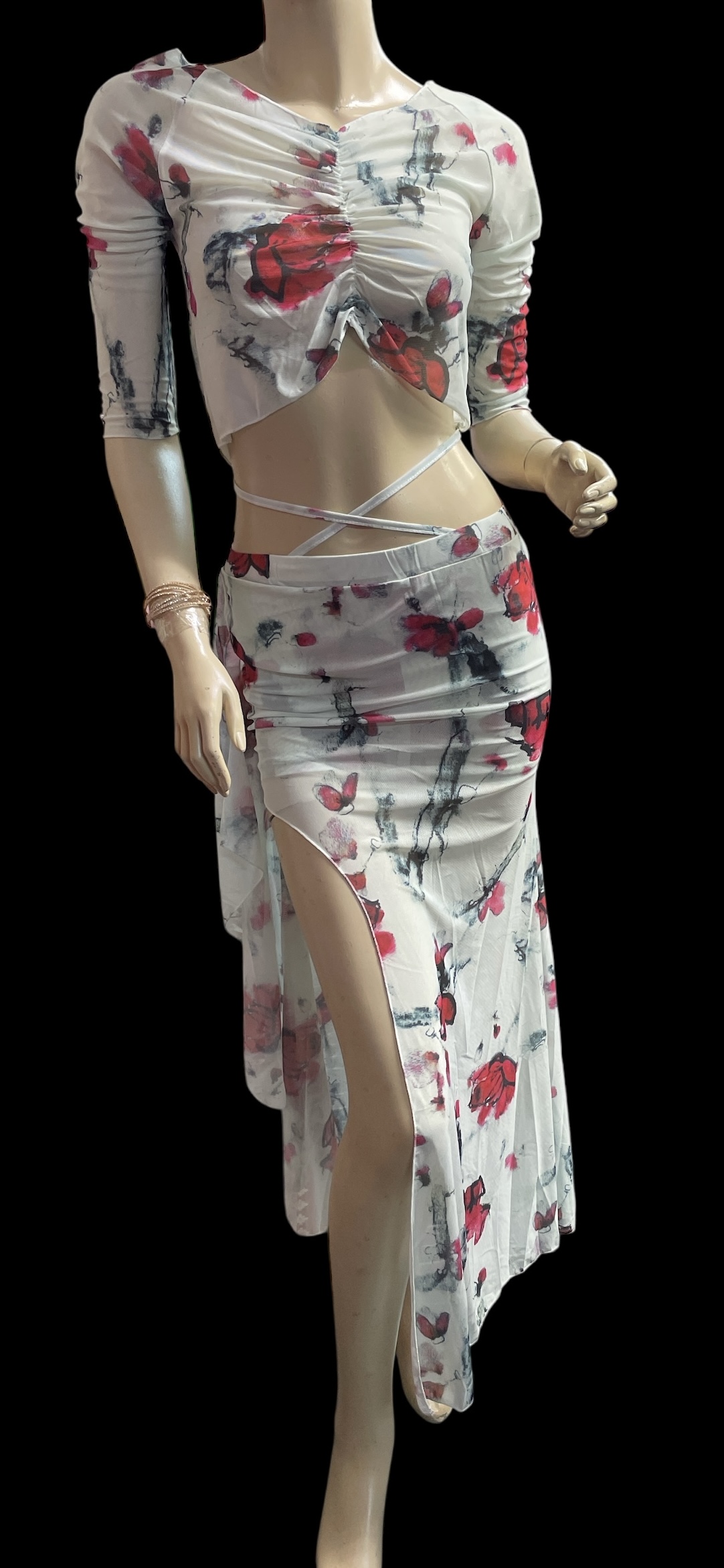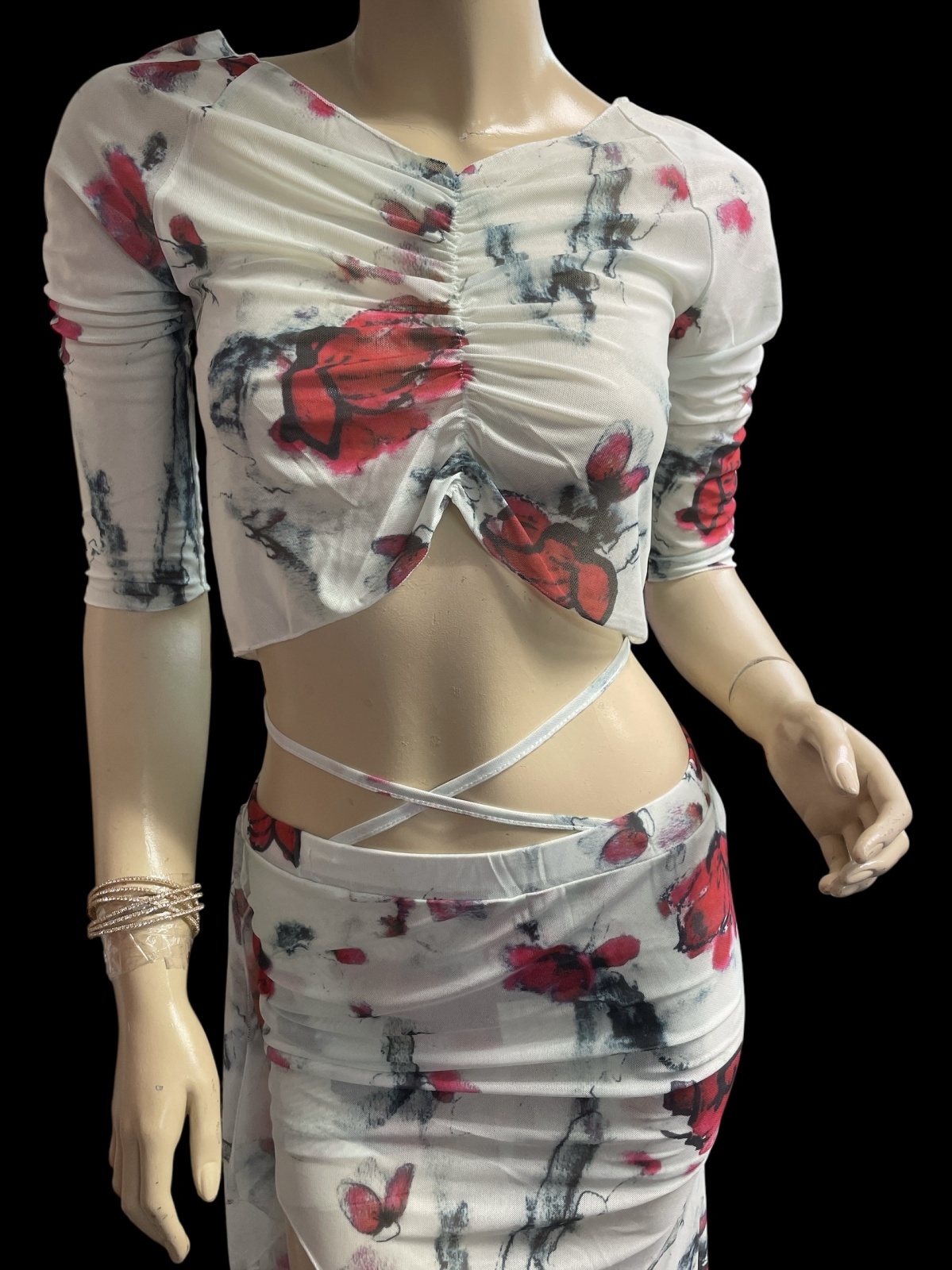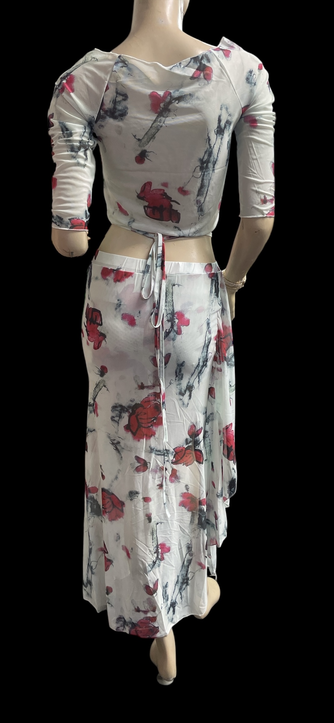 プリントメッシュのチョリ&スカートのセットです。