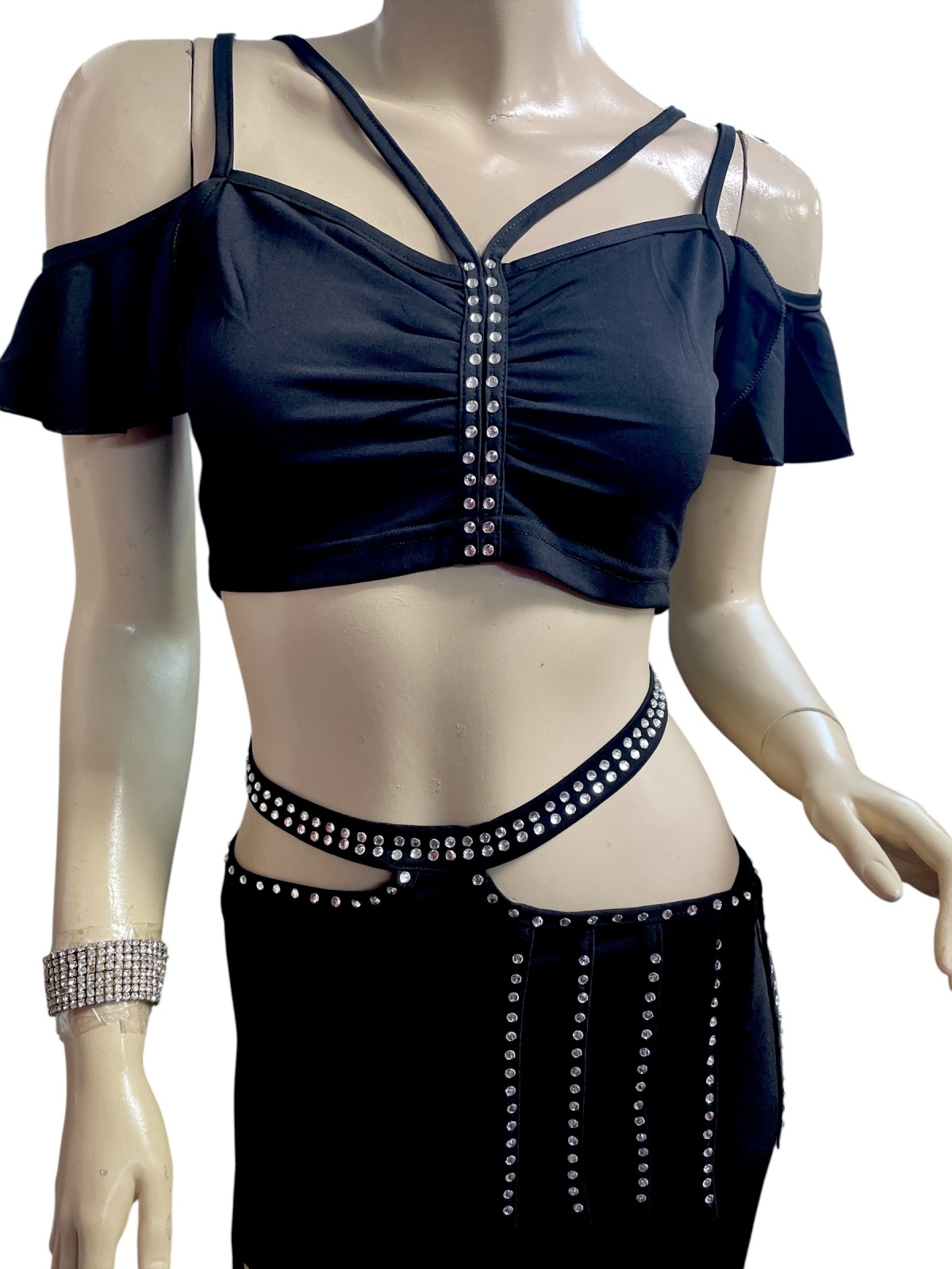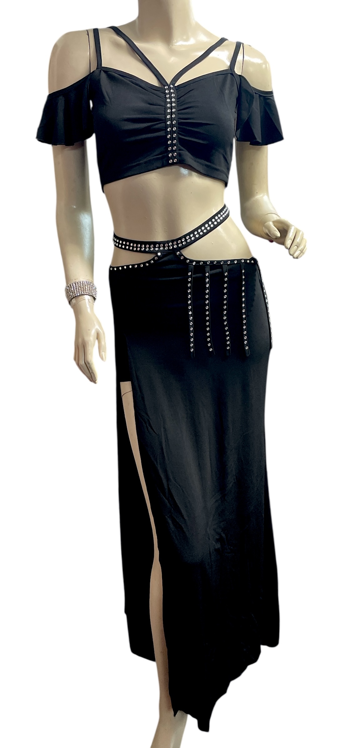 シンプルストレッチチョリ&スカートセット☆ブラック☆