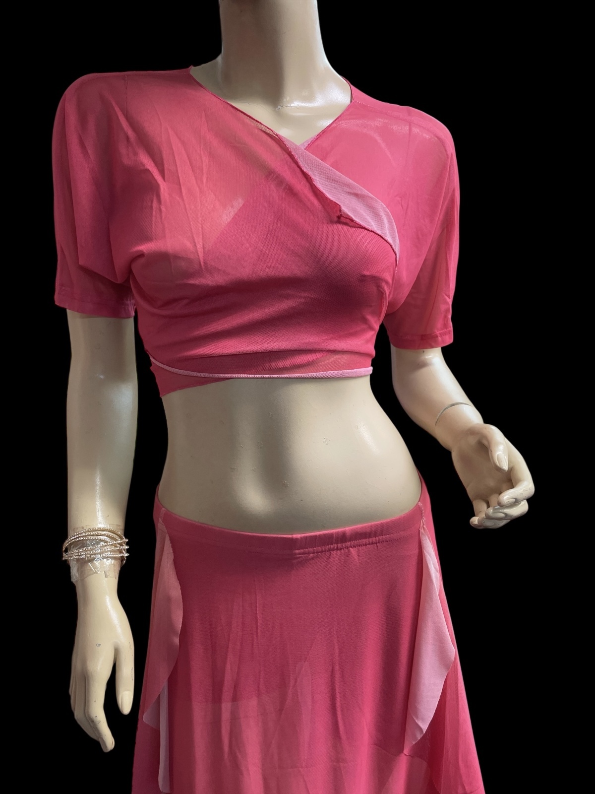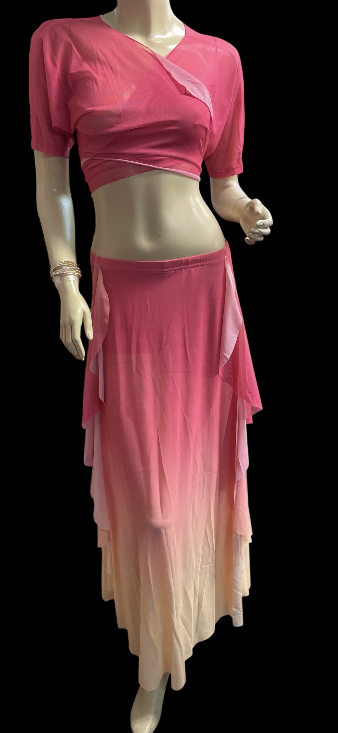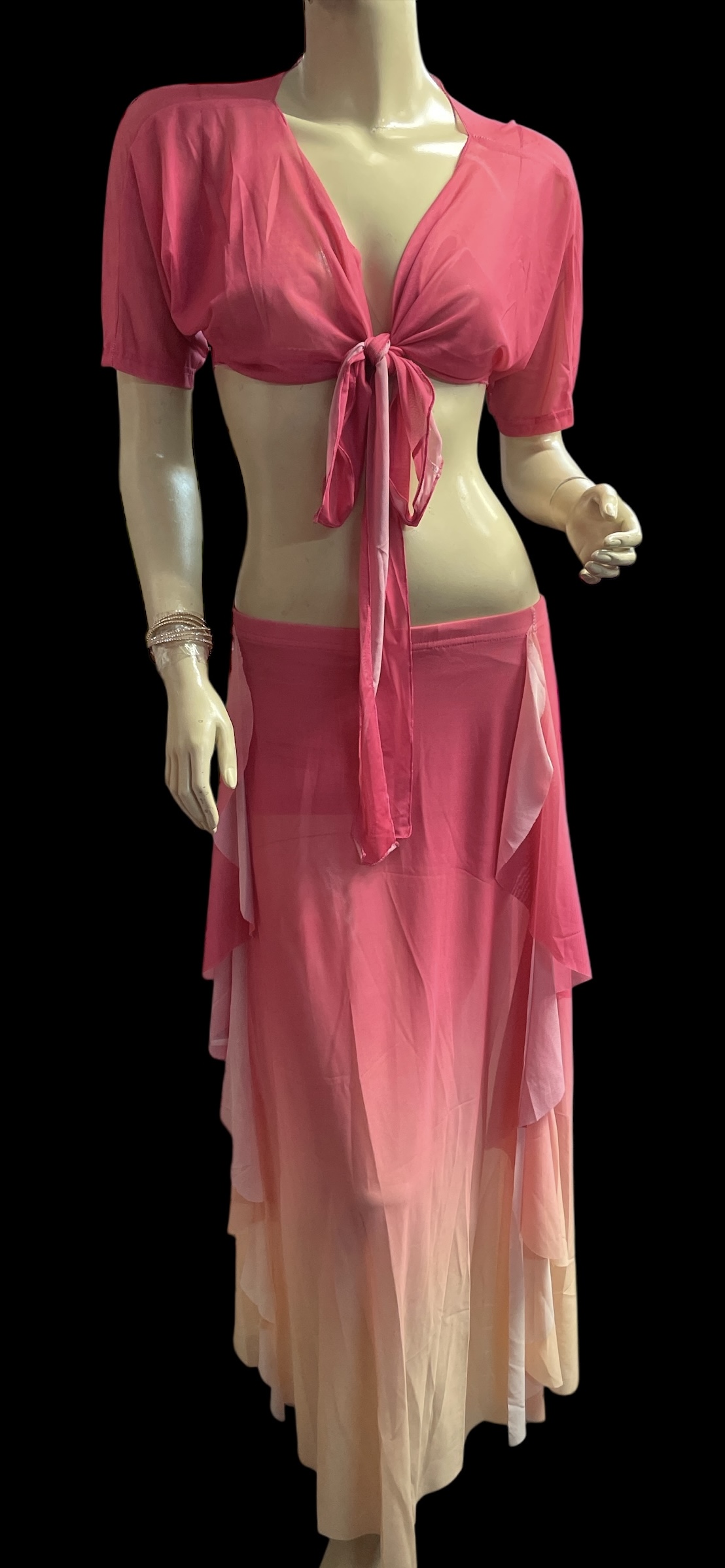 プリントメッシュチョリ&スカートセット☆salmon pink orange gradation ☆