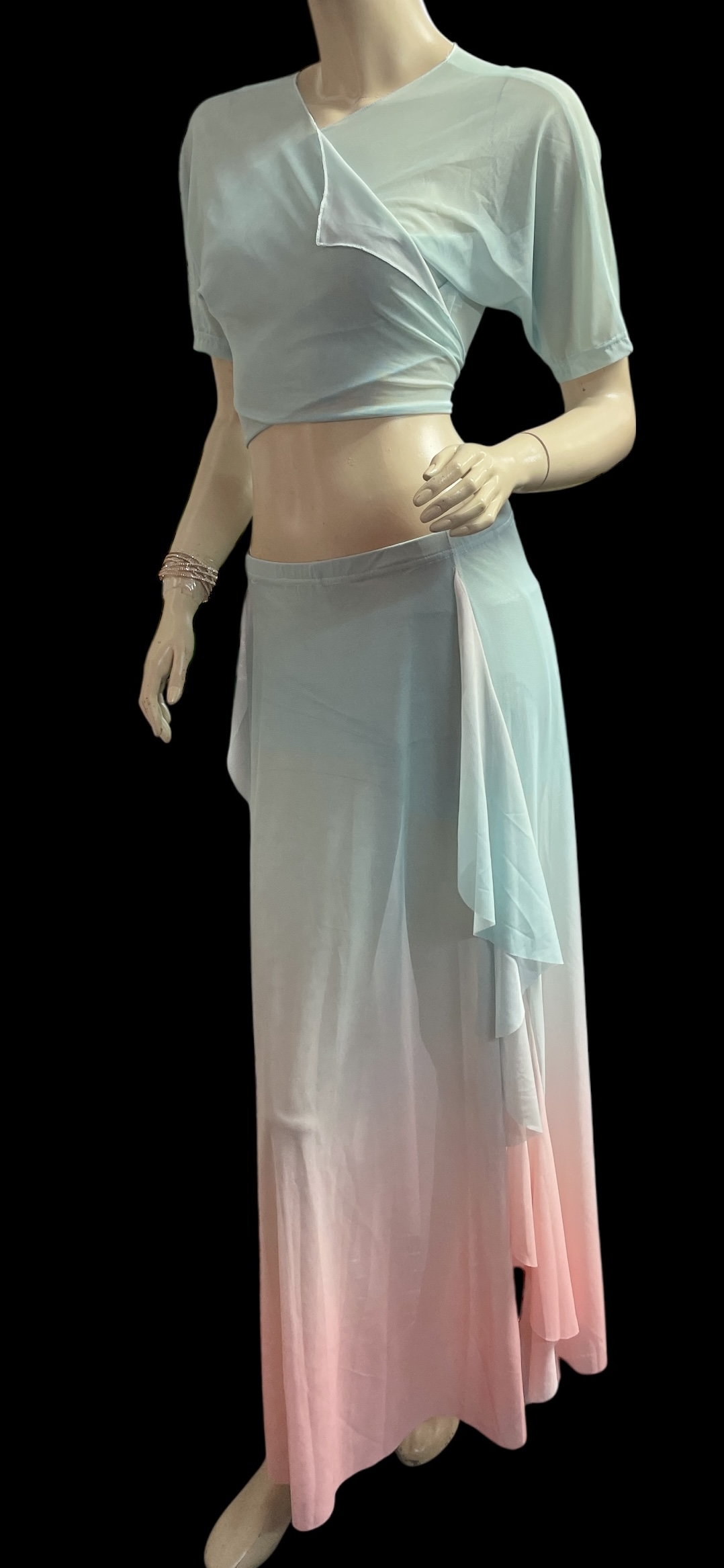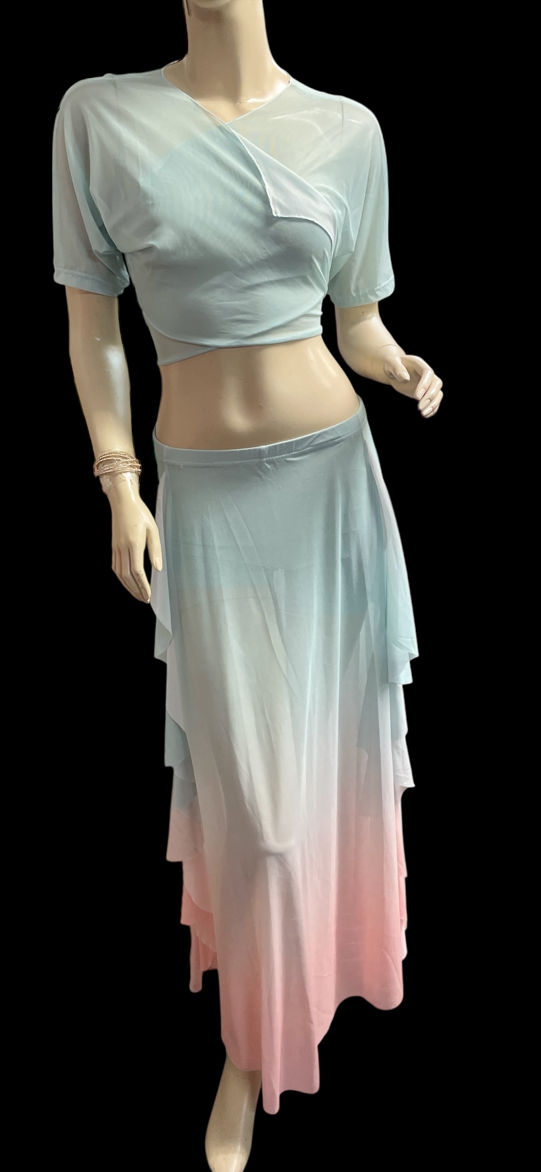 プリントメッシュチョリ&スカートセット☆mint green x pink gradation ☆