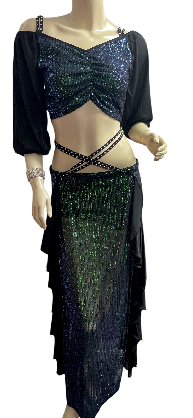 スパンコールストレッチチョリ&スカートセット☆green ☆ [CSK0005-08]