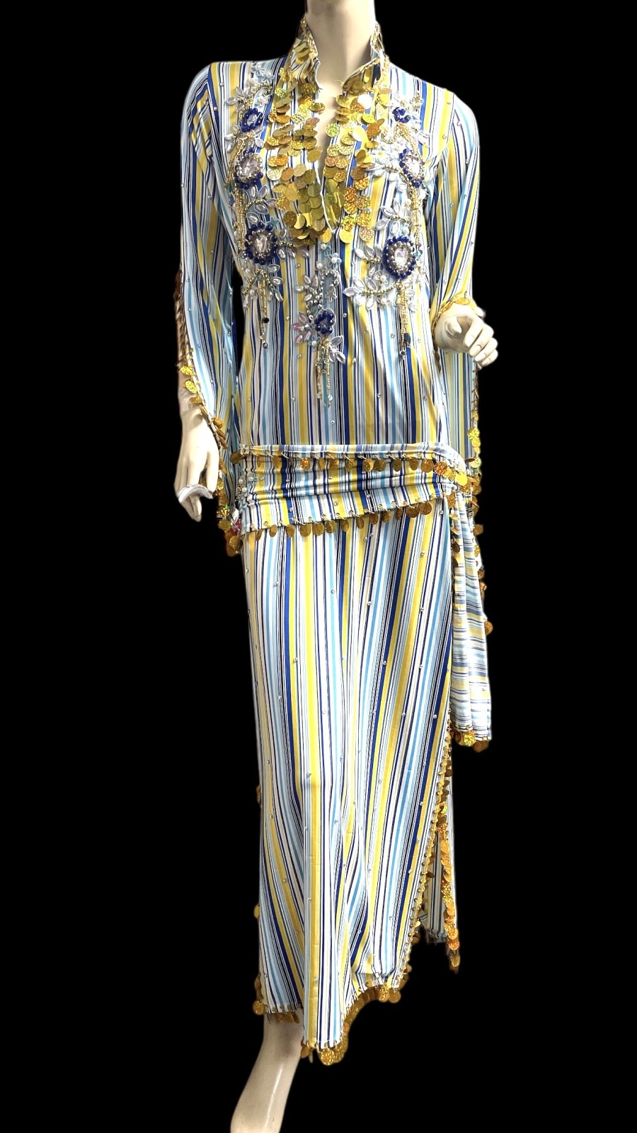 エジプト製ゴージャスストライプサイーディ/ バラディドレス☆yellow X blue☆
