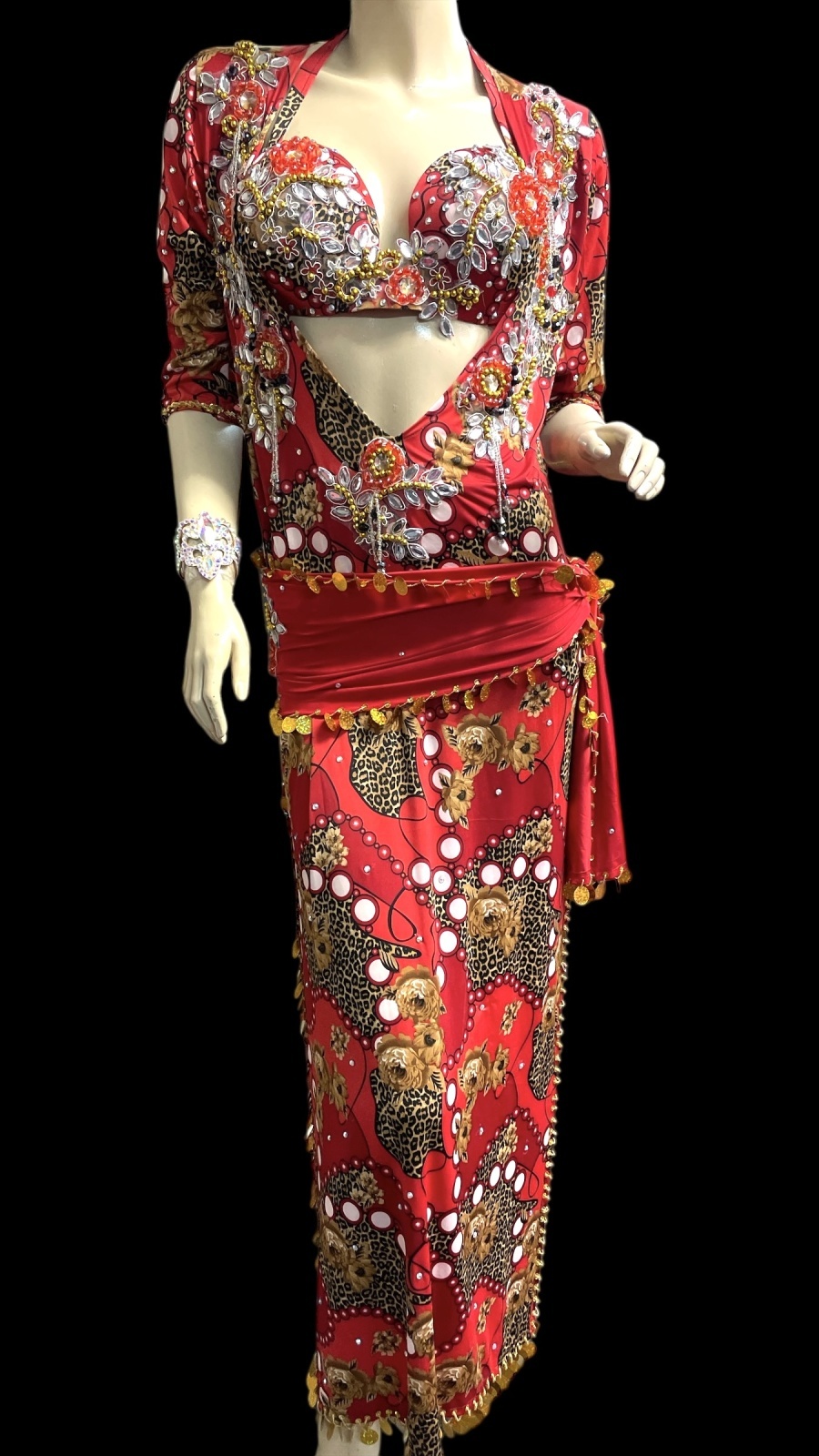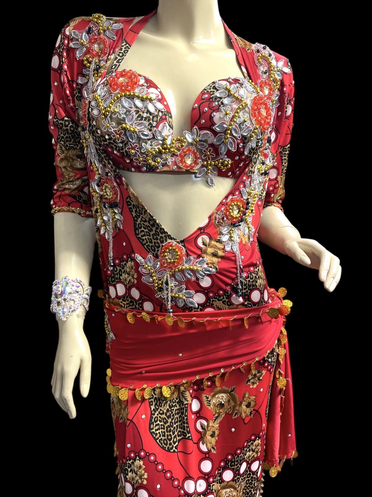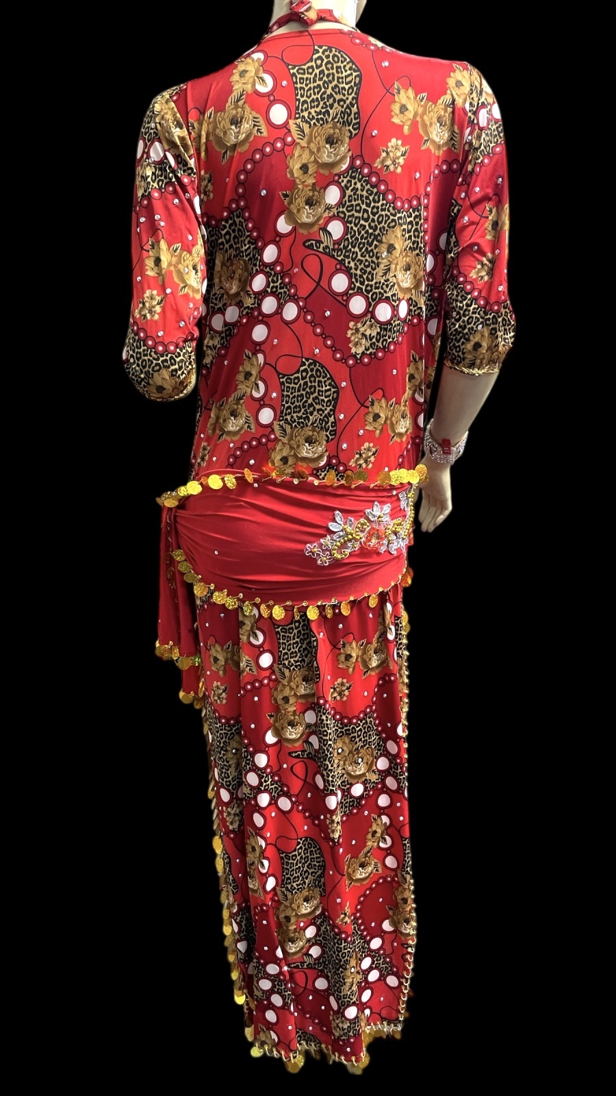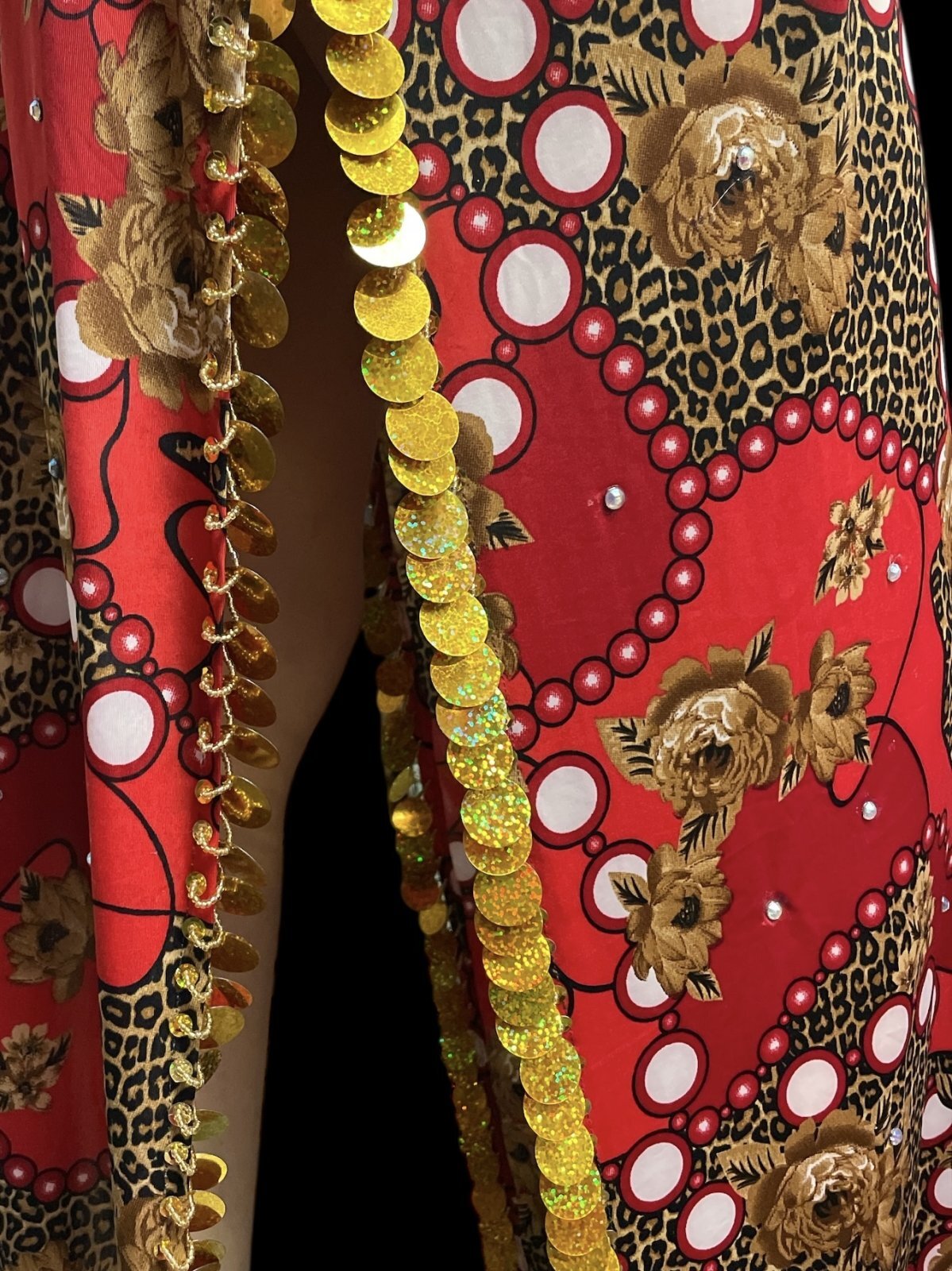 エジプト製プリントストレッチバラディドレス☆Red flower☆ [CF0084-7]