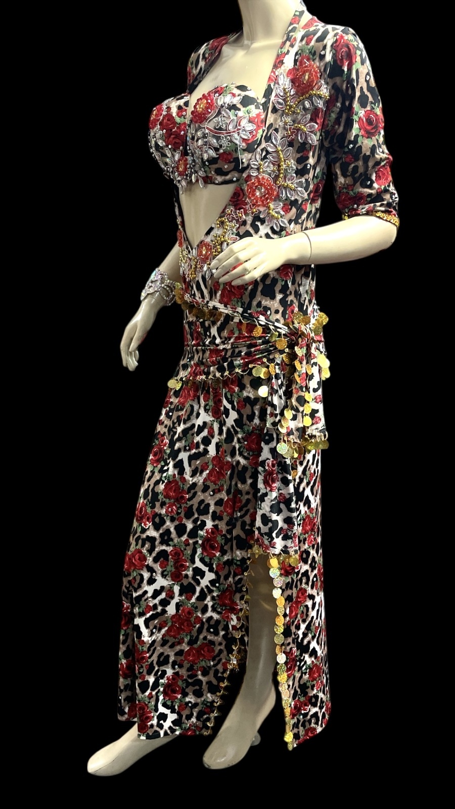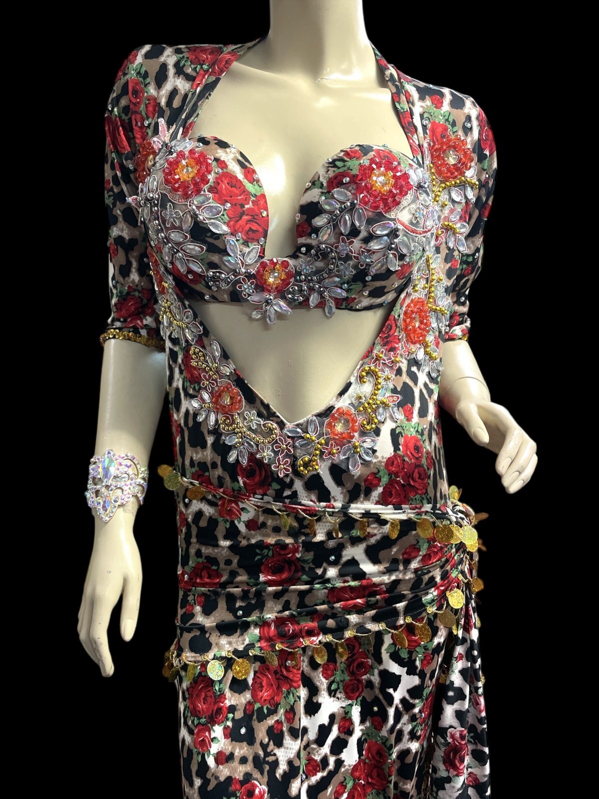 エジプト製プリントストレッチバラディドレス☆ black red rose ☆