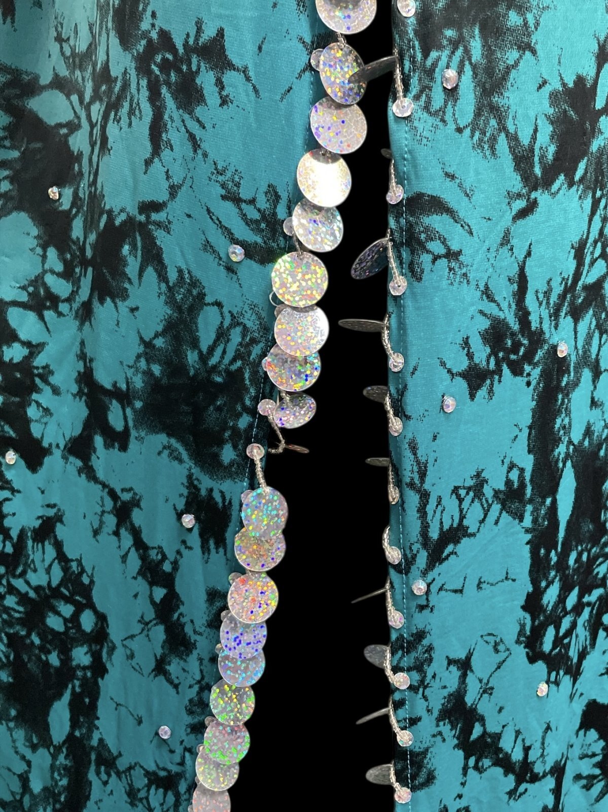 エジプト製プリントストレッチバラディドレス☆ black green tie dye color☆ [CF0084-12]