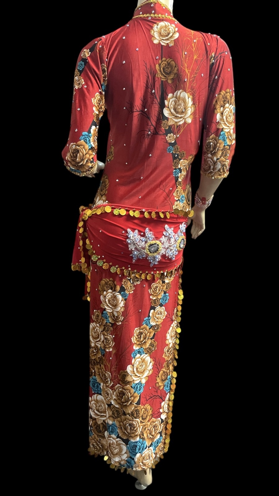 エジプト製プリントストレッチバラディドレス☆red flower ☆ [CF0084-13]