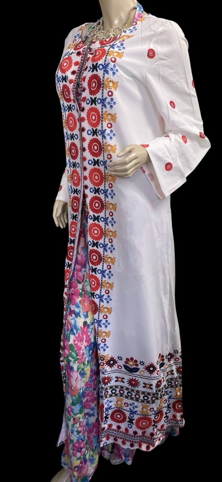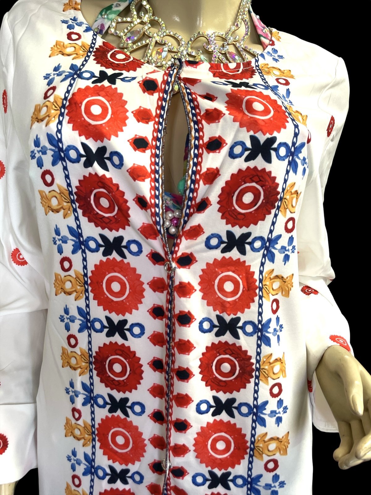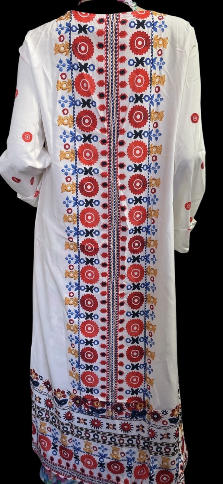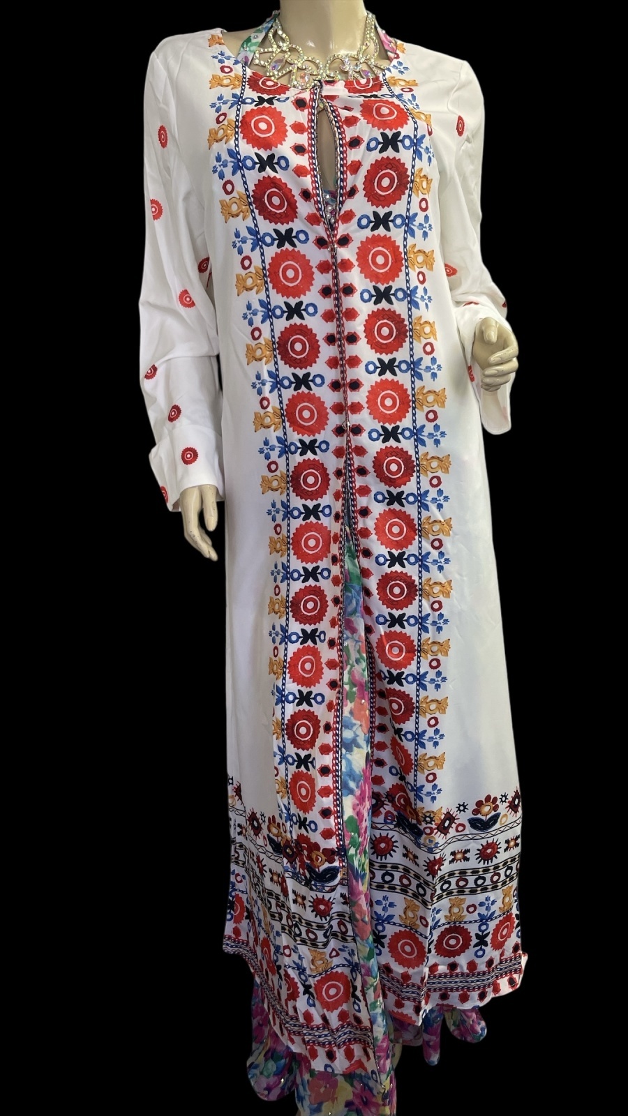 プリントポリエステルガラベーヤ☆White orange flower☆前開きタイプ☆フロントオープン