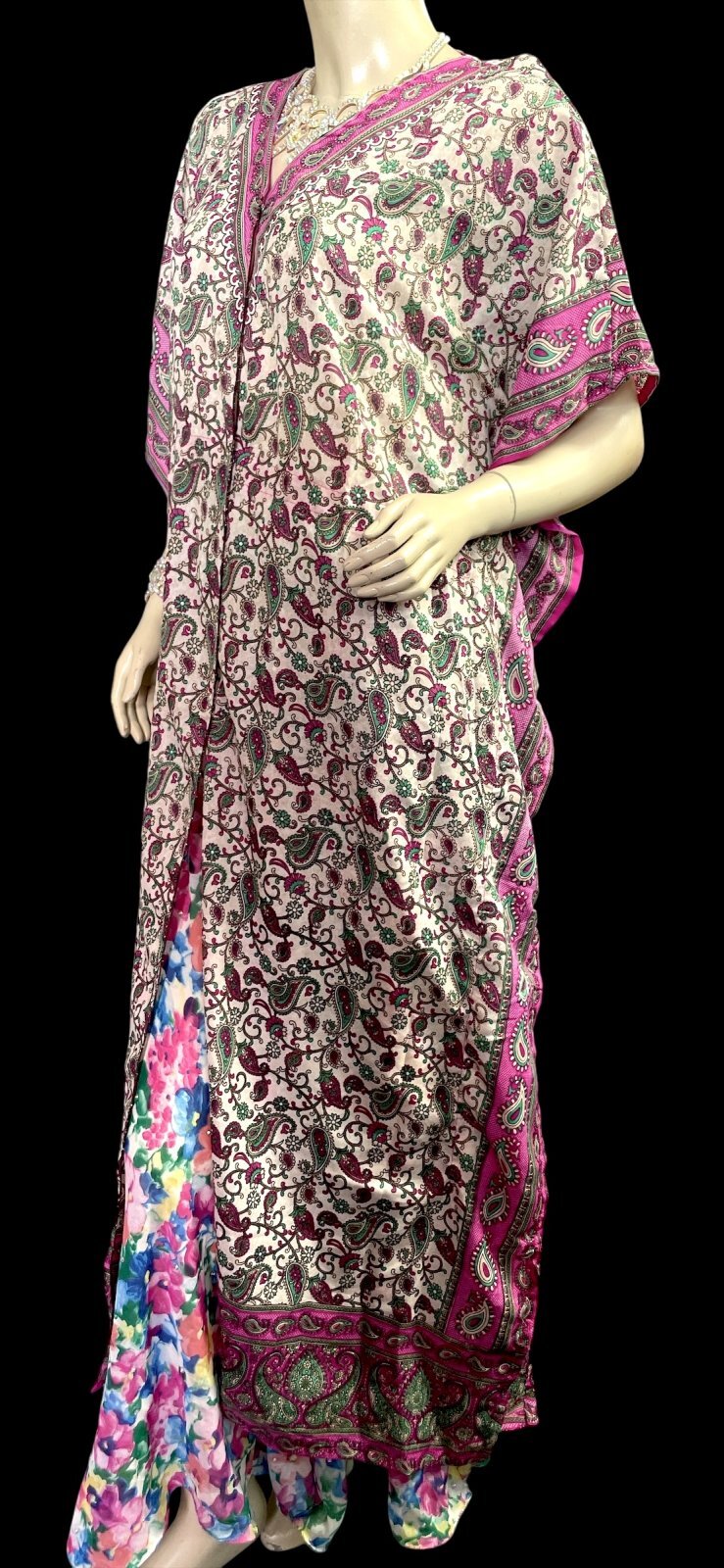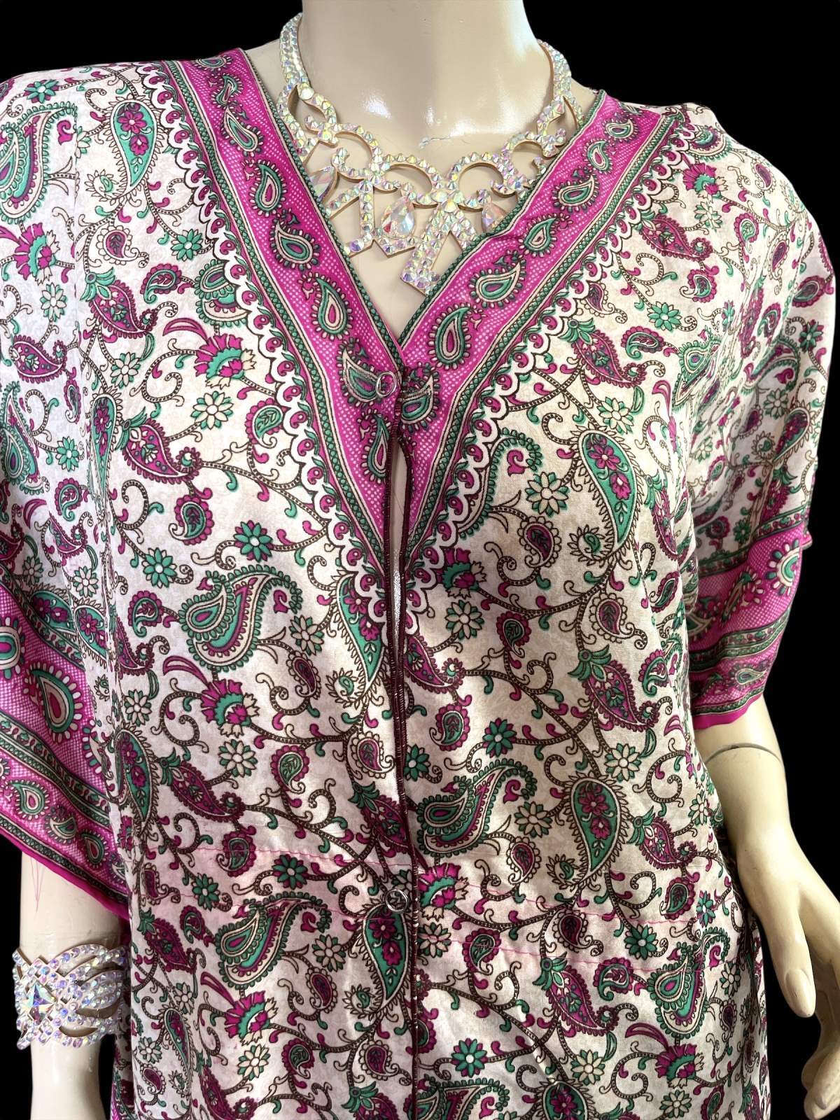 プリントカバードレス☆ピンクグリーンペイズリー☆⭐️フロントオープン ⭐️