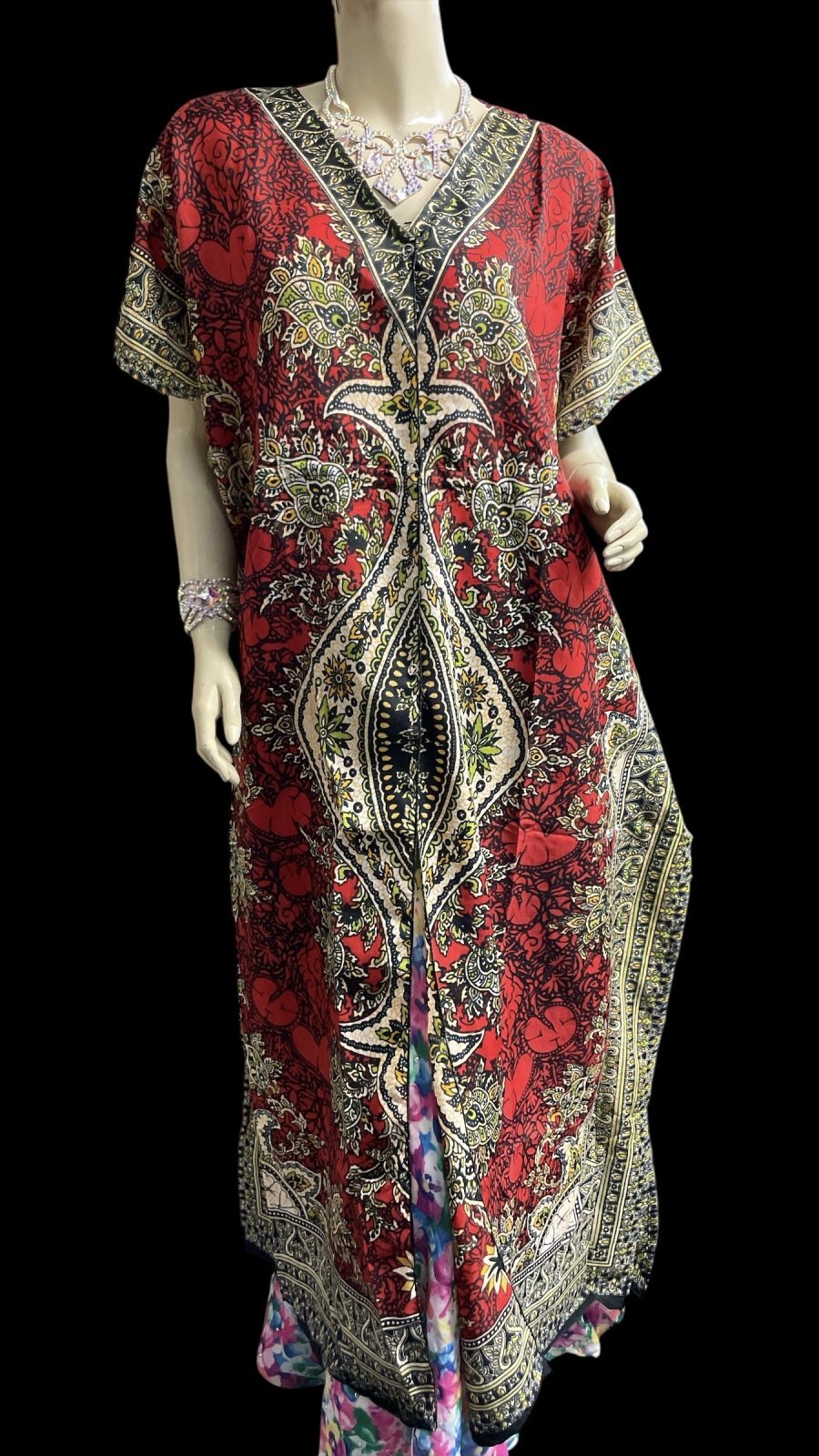 プリントカバードレス☆レッドアラビアンアラベスク☆⭐️フロントオープン ⭐️