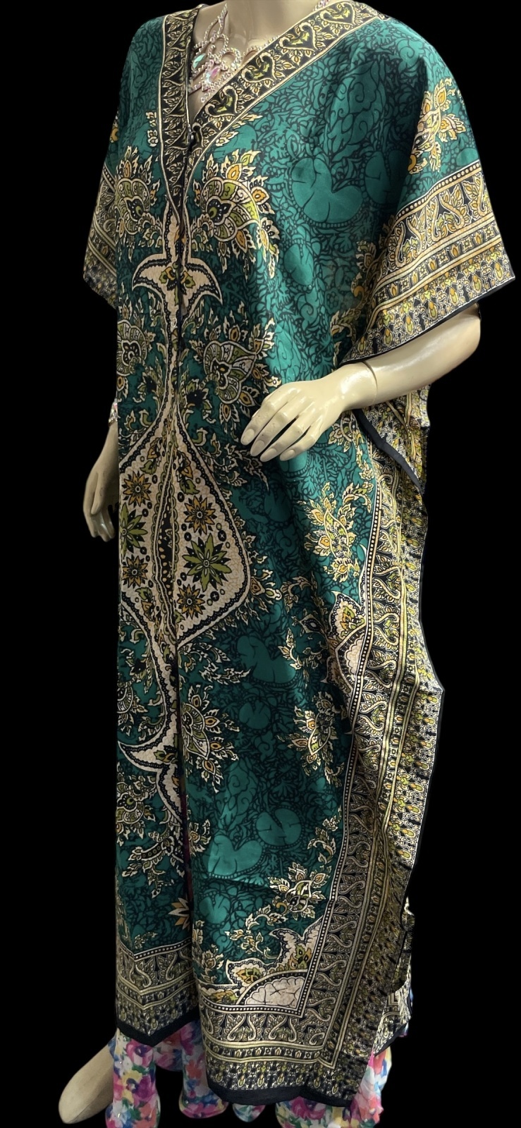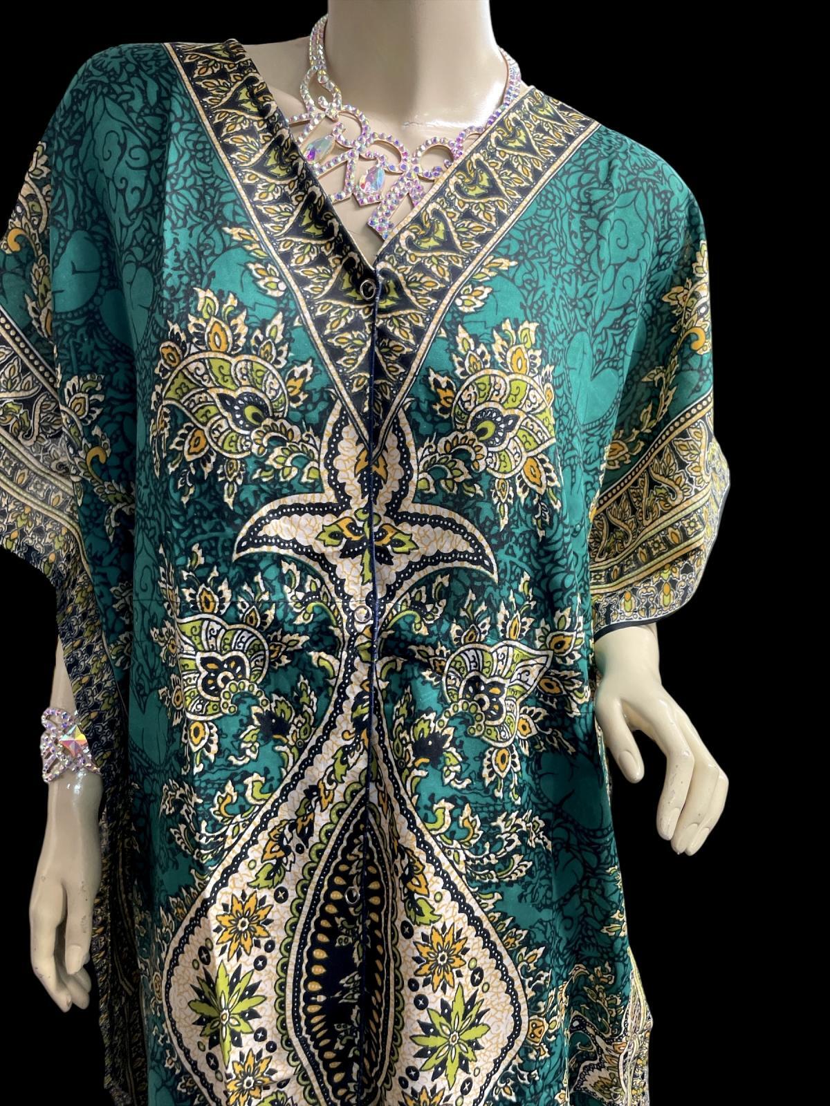 プリントカバードレス☆グリーンアラビアンアラベスク☆⭐️フロントオープン ⭐️