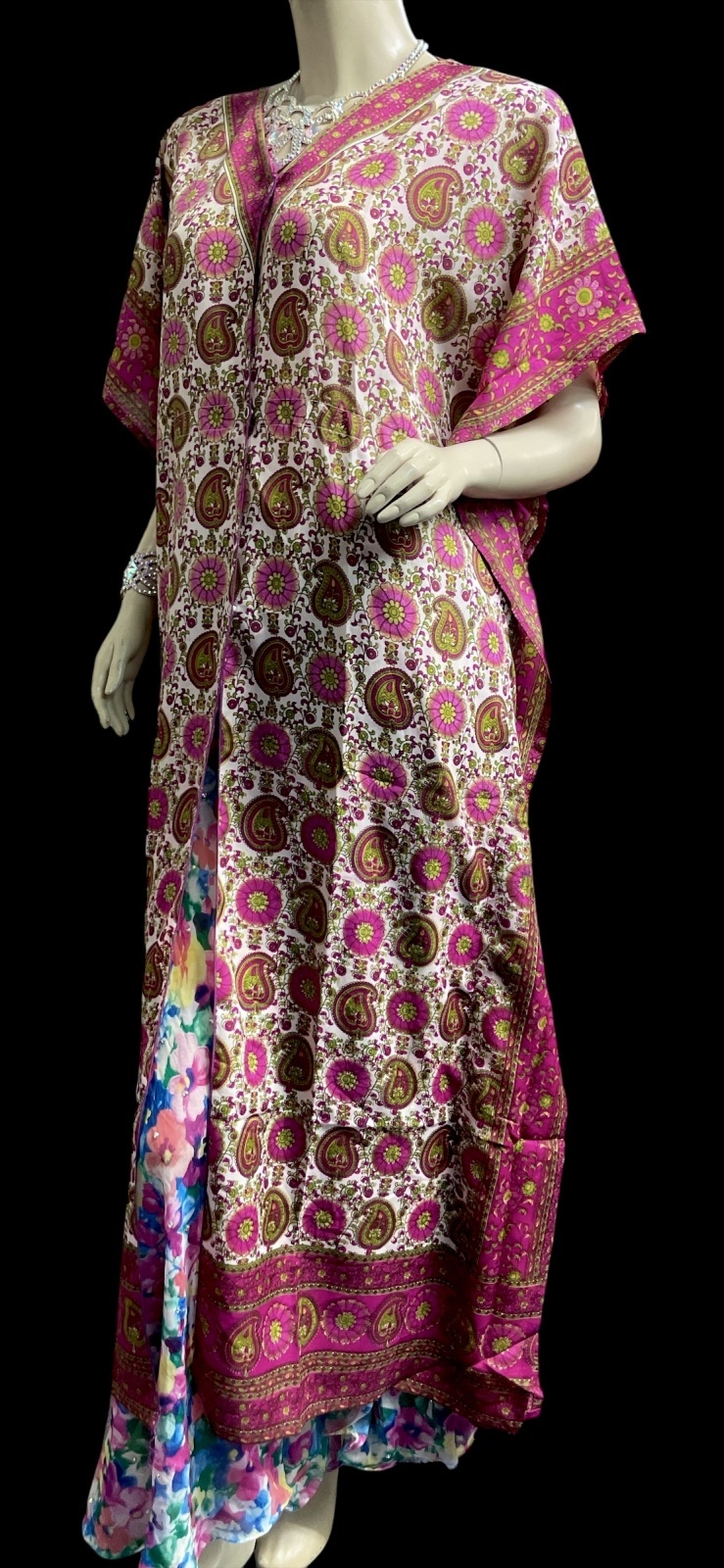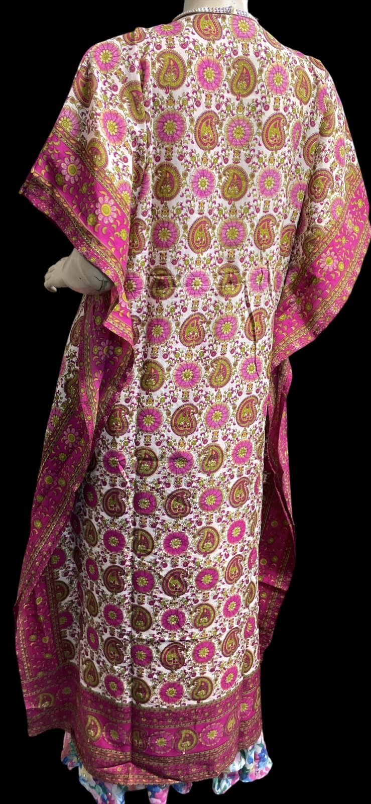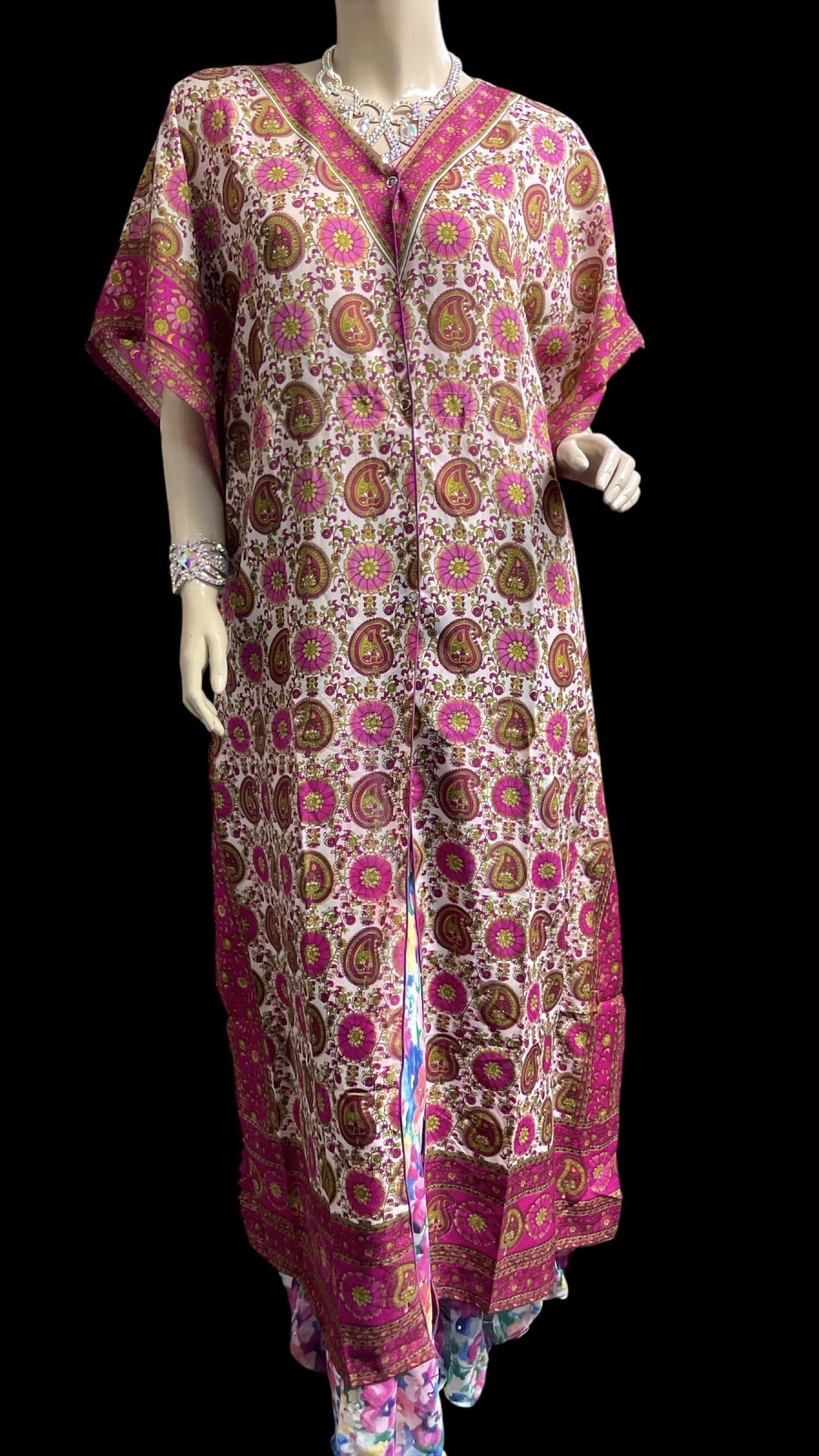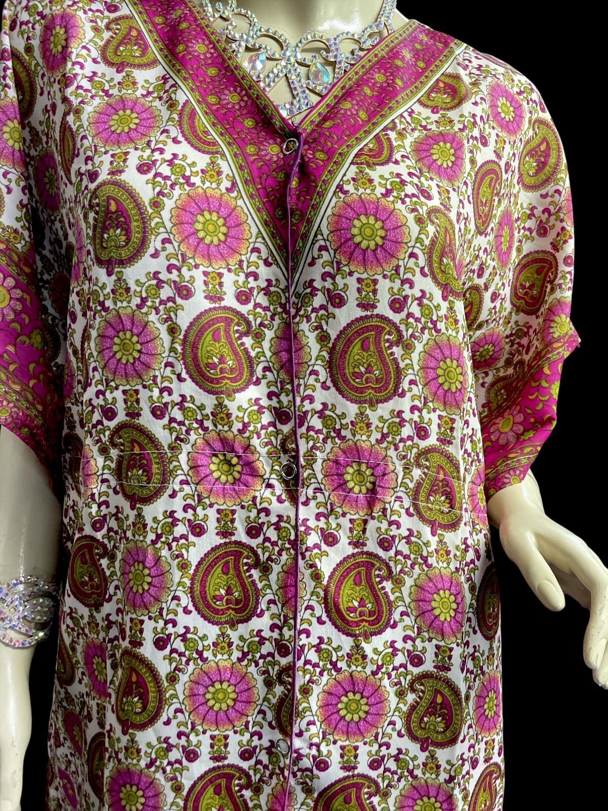 プリントカバードレス☆ピンクオリーブペイズリー☆⭐️フロントオープン ⭐️ [IDR0002-10]