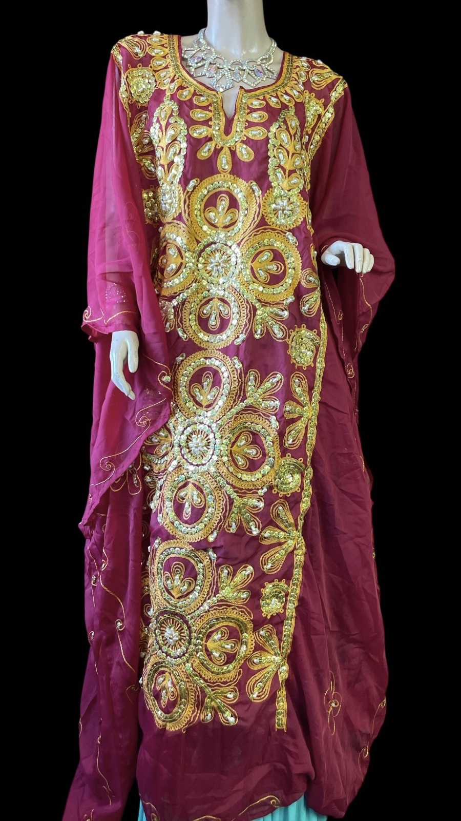 エジプト製トラディショナルハリジドレス☆burgundy ☆
