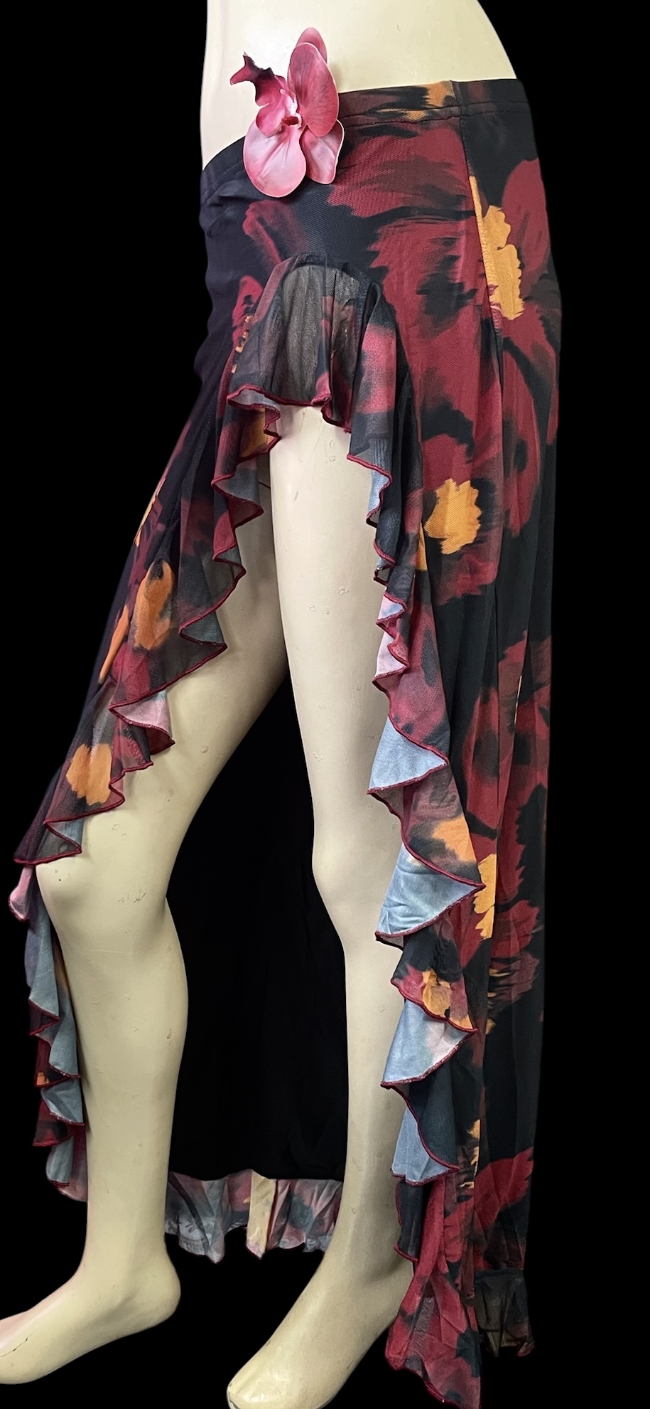 ストレッチフリルスリットスカート☆Black red flower☆ [CS0009BLR]