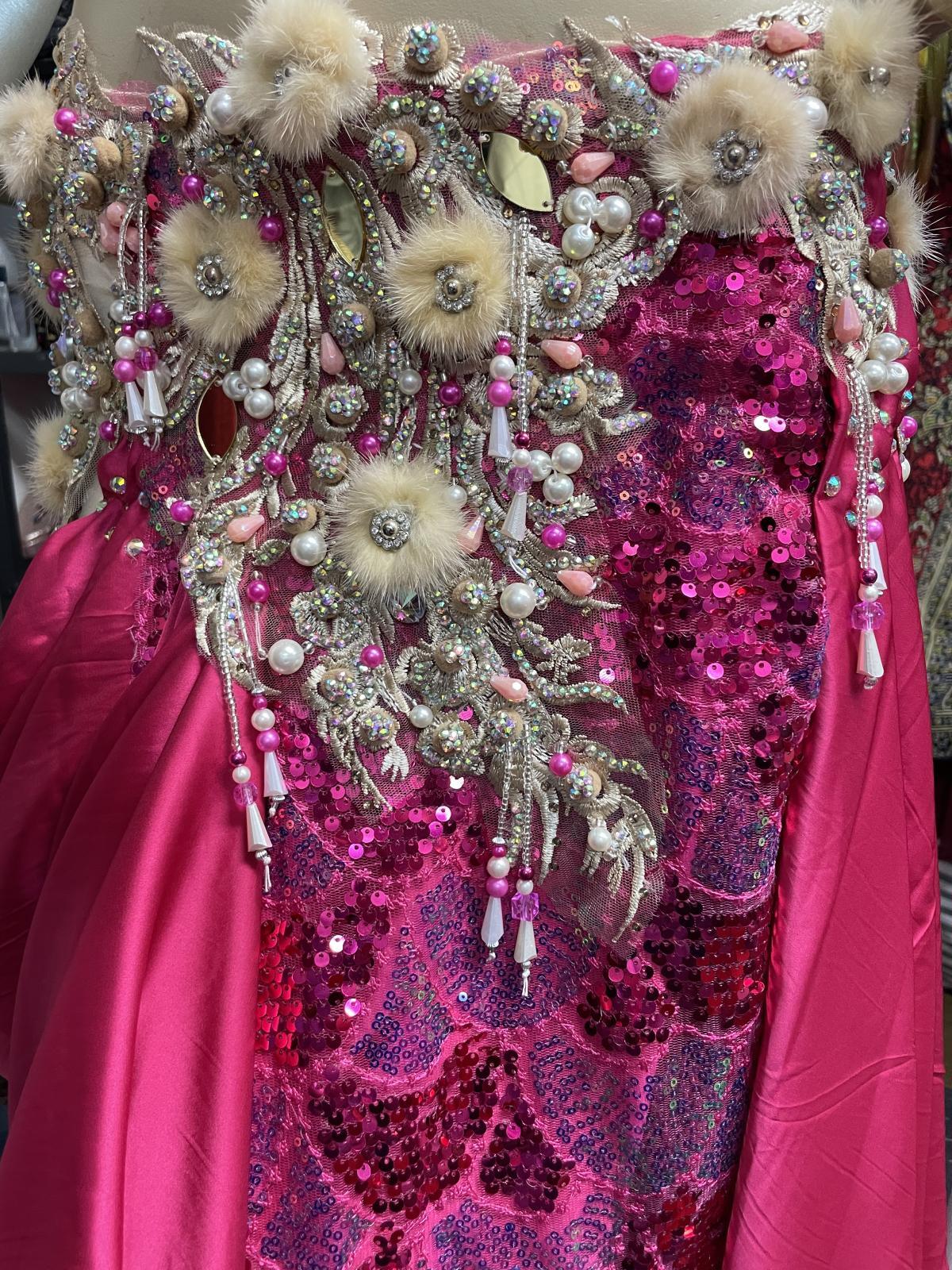 大人っぽいダークピンク🩷のドレスが舞いを美しく演出してくれます。