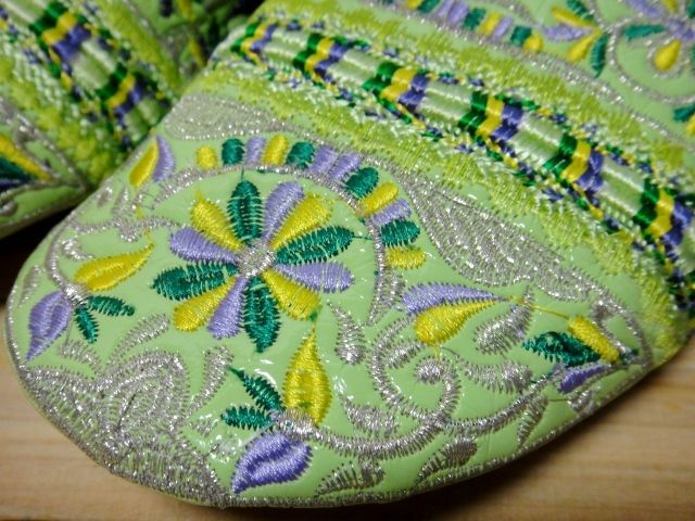 モロッコのバブーシュ☆エナメルミントブロダリー☆