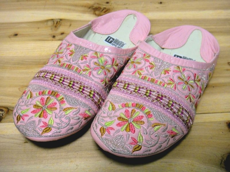 モロッコのバブーシュ☆エナメルベビーピンクブロダリー☆