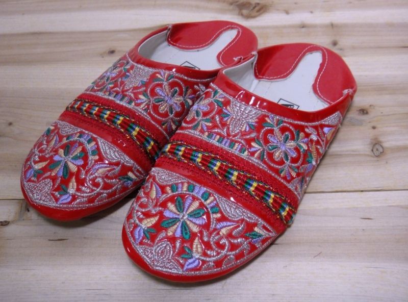 モロッコのバブーシュ☆エナメルレッドブロダリー☆