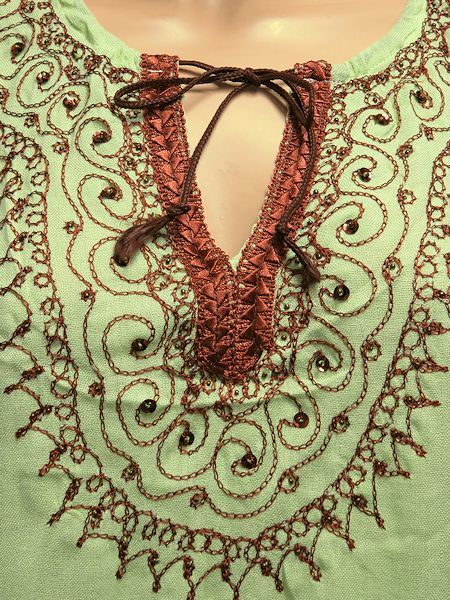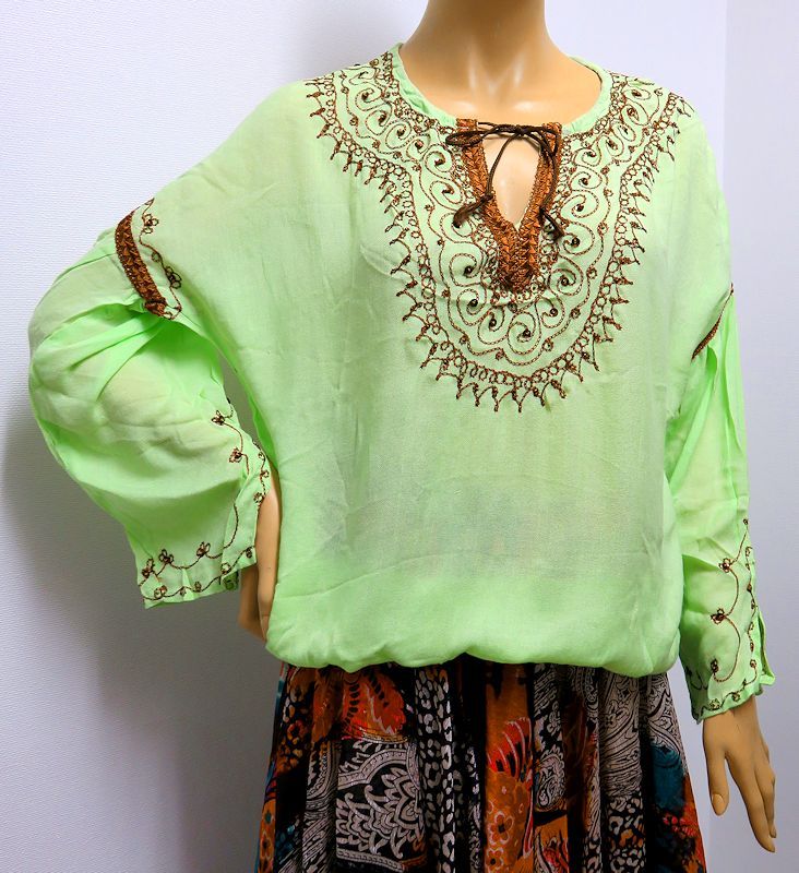 モロッコのバルーンチュニック☆ミントグリーン✕ブラウン☆