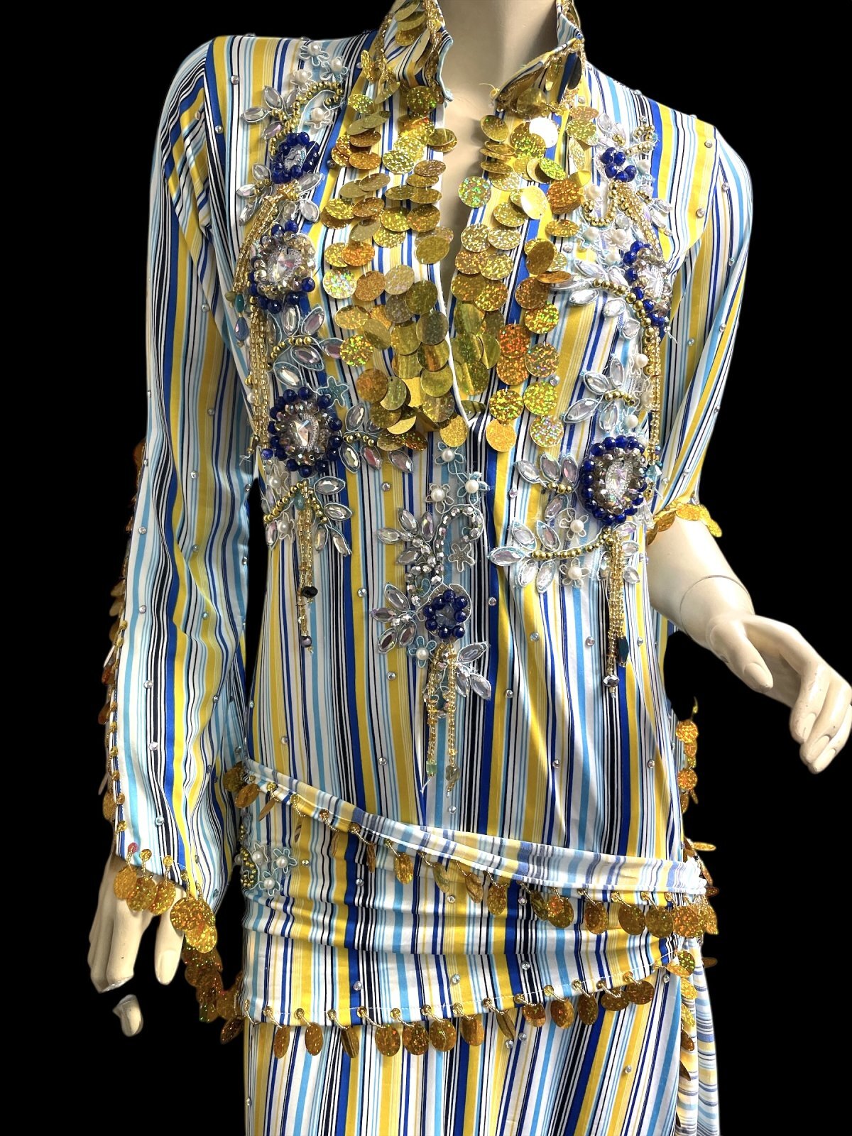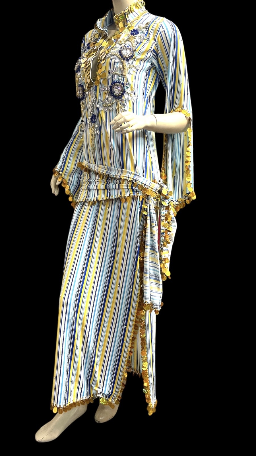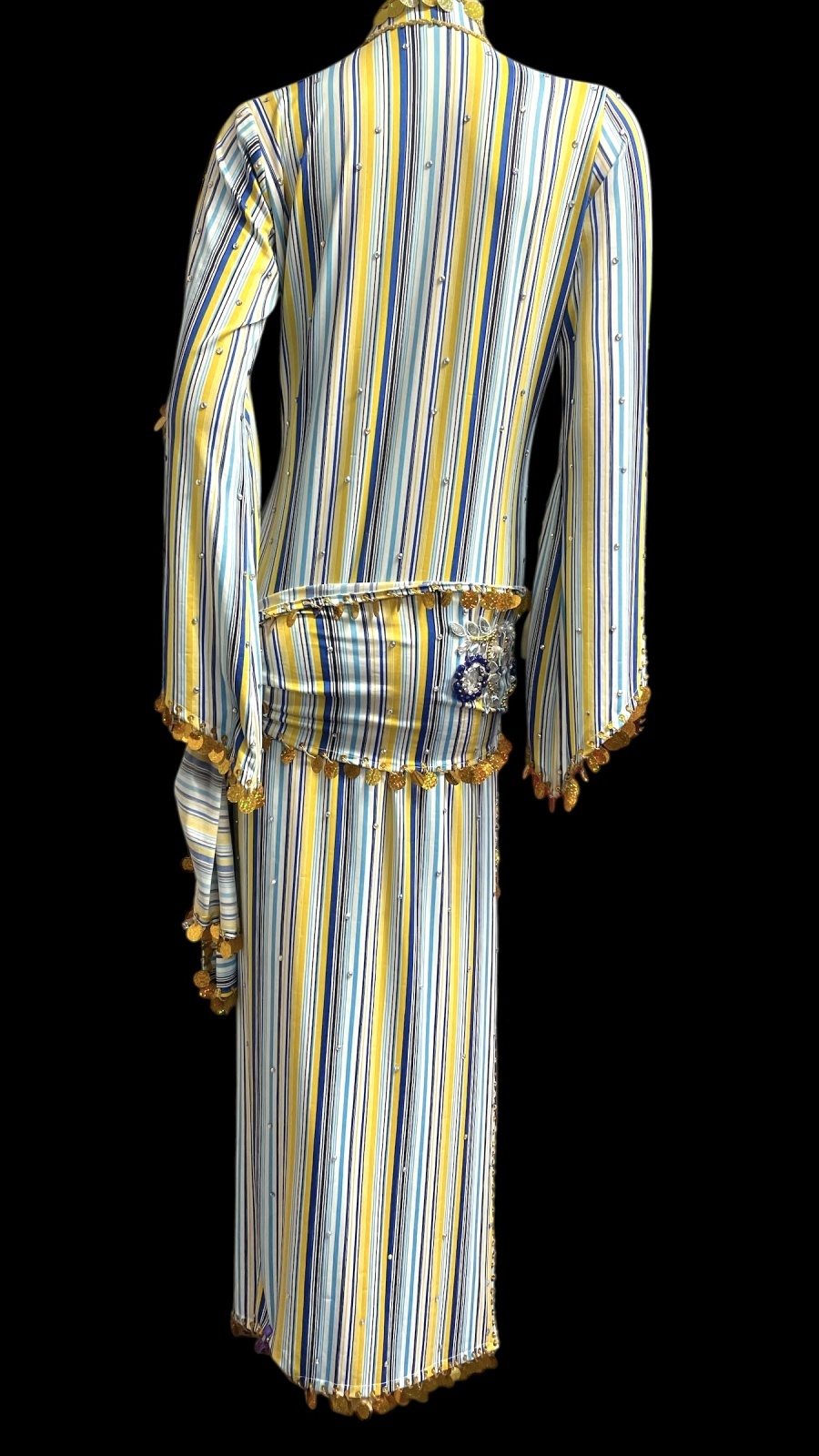 エジプト製ゴージャスストライプサイーディ/ バラディドレス☆yellow X blue☆