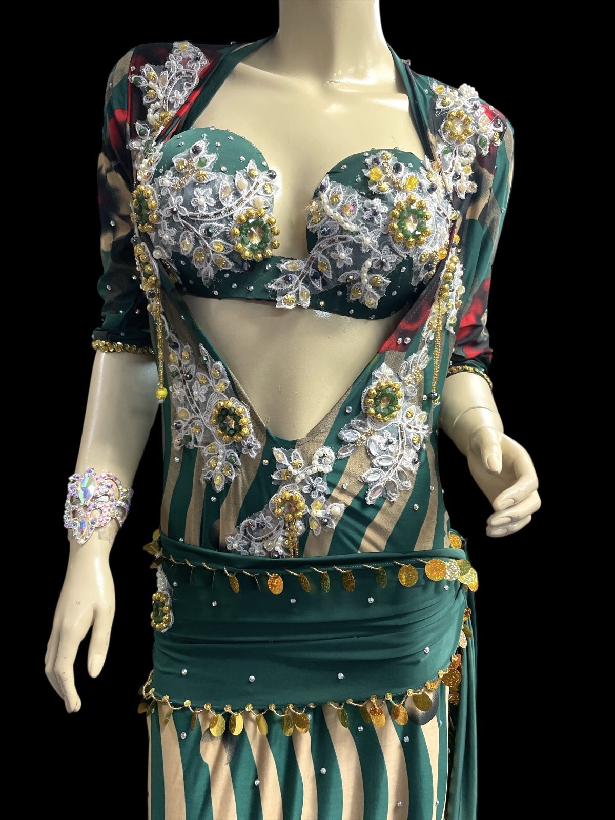 ホーム | コスチューム > サイディ・バラディエジプト製プリントストレッチバラディドレス☆green stripe flower☆
