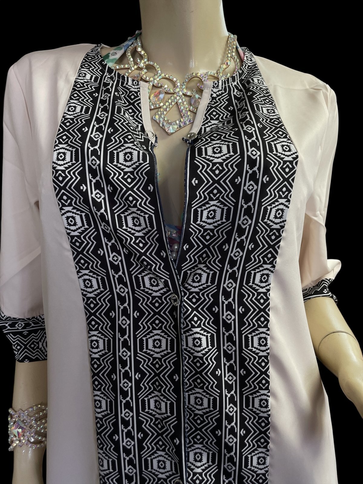 プリントポリエステルガラベーヤ☆beige ☆前開きタイプ☆フロントオープン