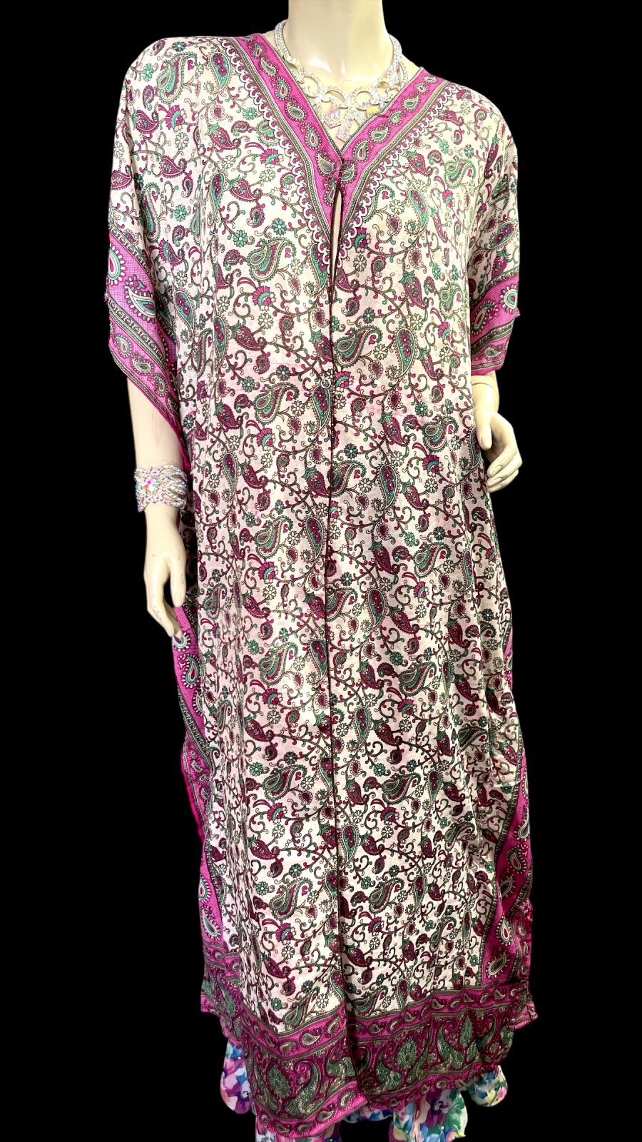 プリントカバードレス☆ピンクグリーンペイズリー☆⭐️フロントオープン ⭐️