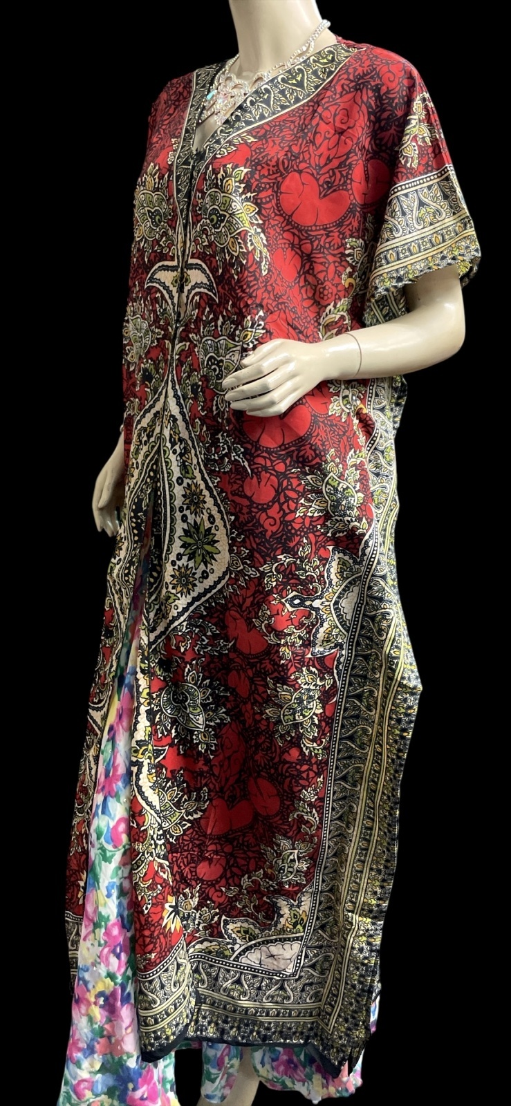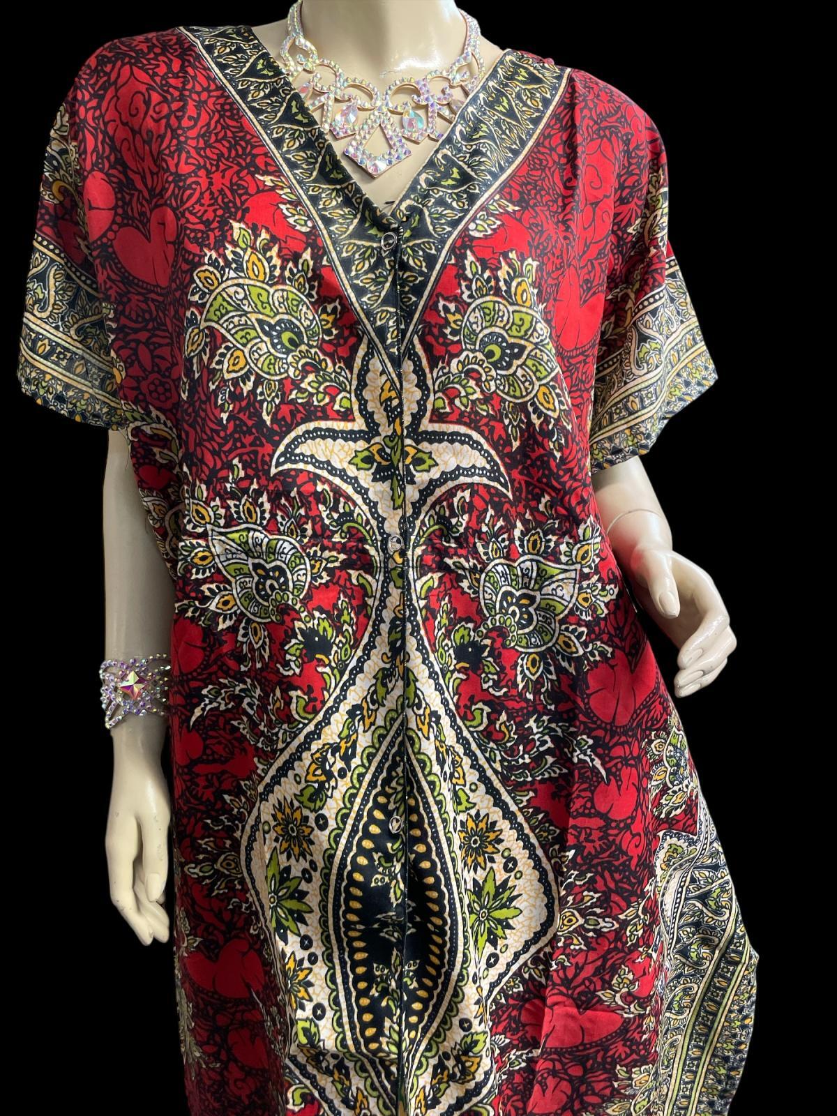 プリントカバードレス☆レッドアラビアンアラベスク☆⭐️フロントオープン ⭐️