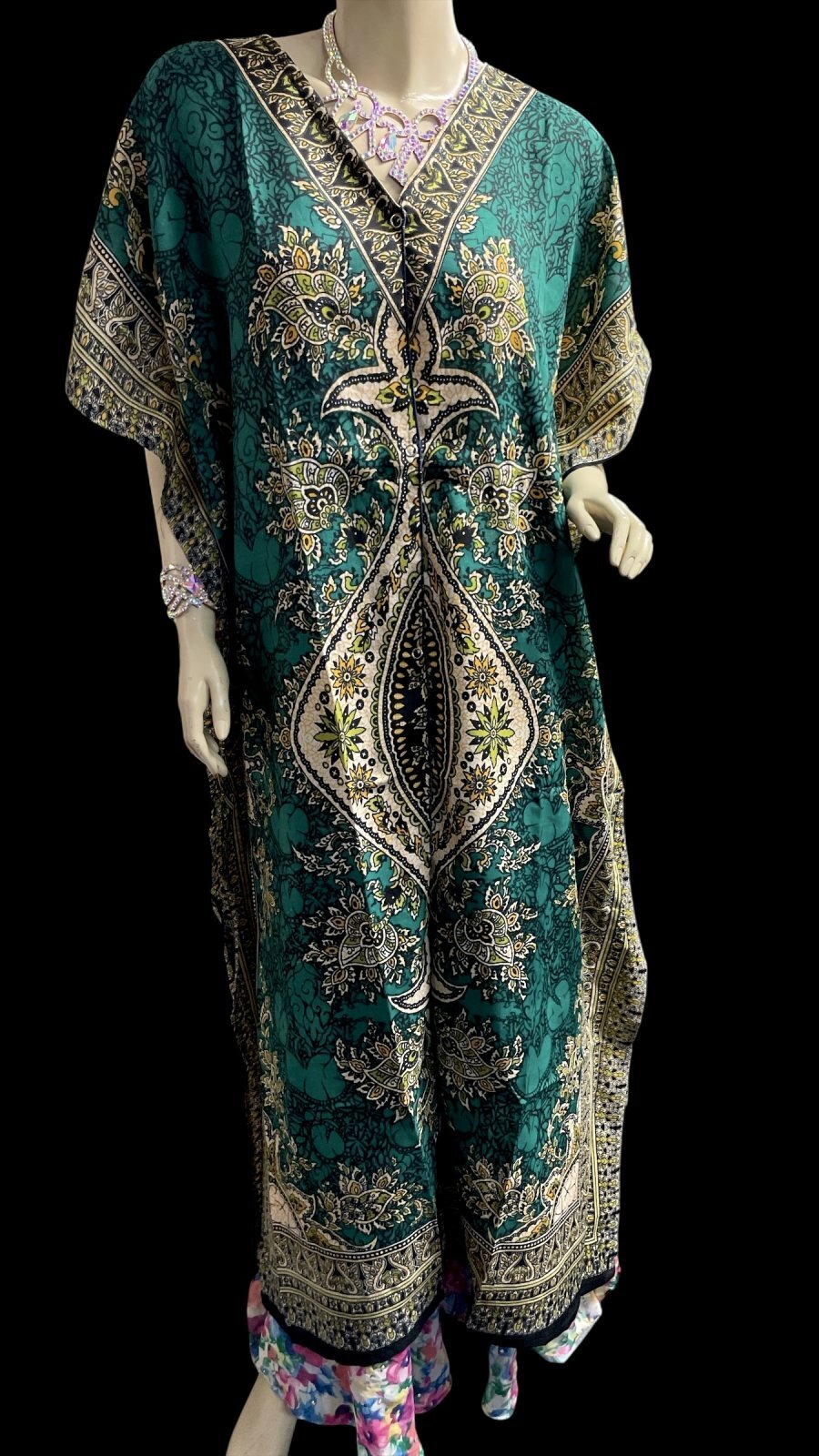 プリントカバードレス☆グリーンアラビアンアラベスク☆⭐️フロントオープン ⭐️