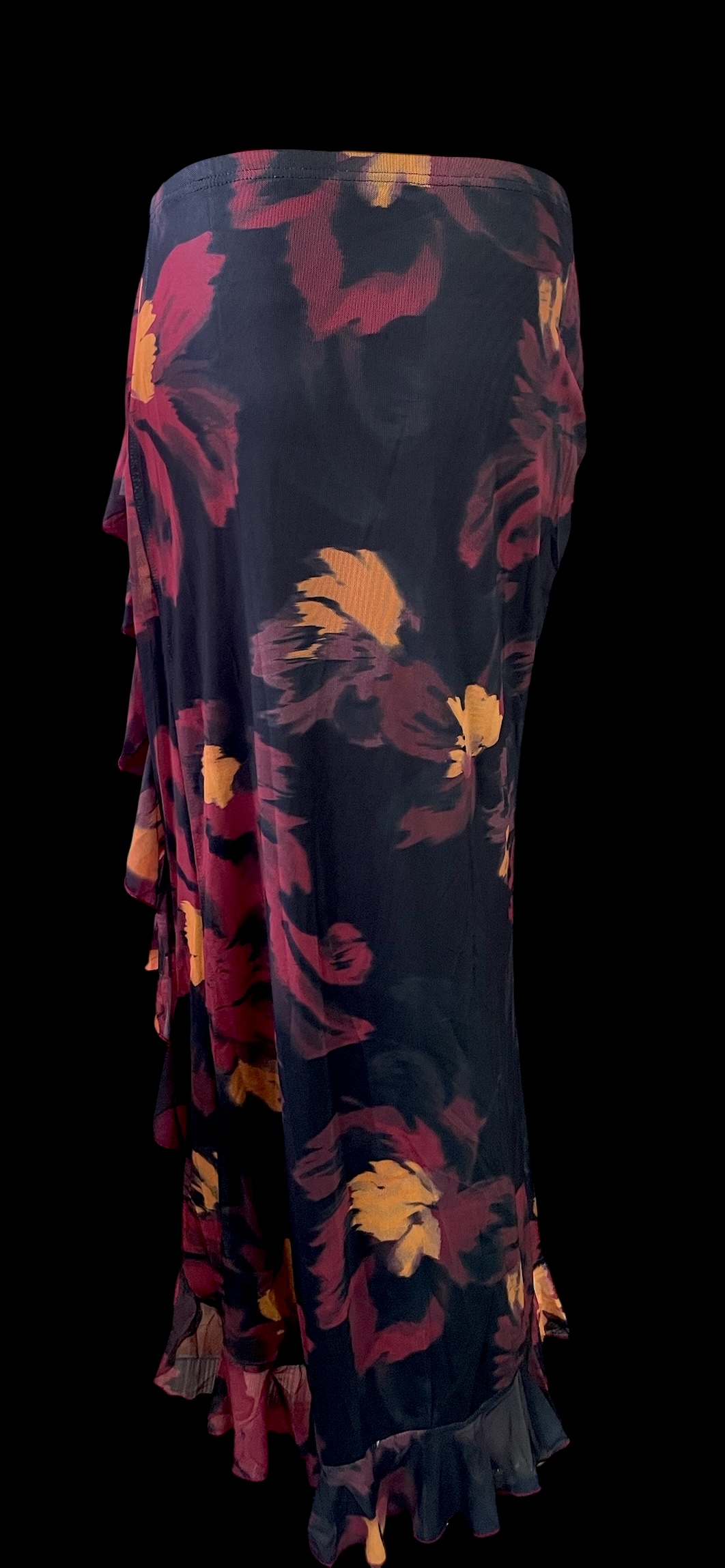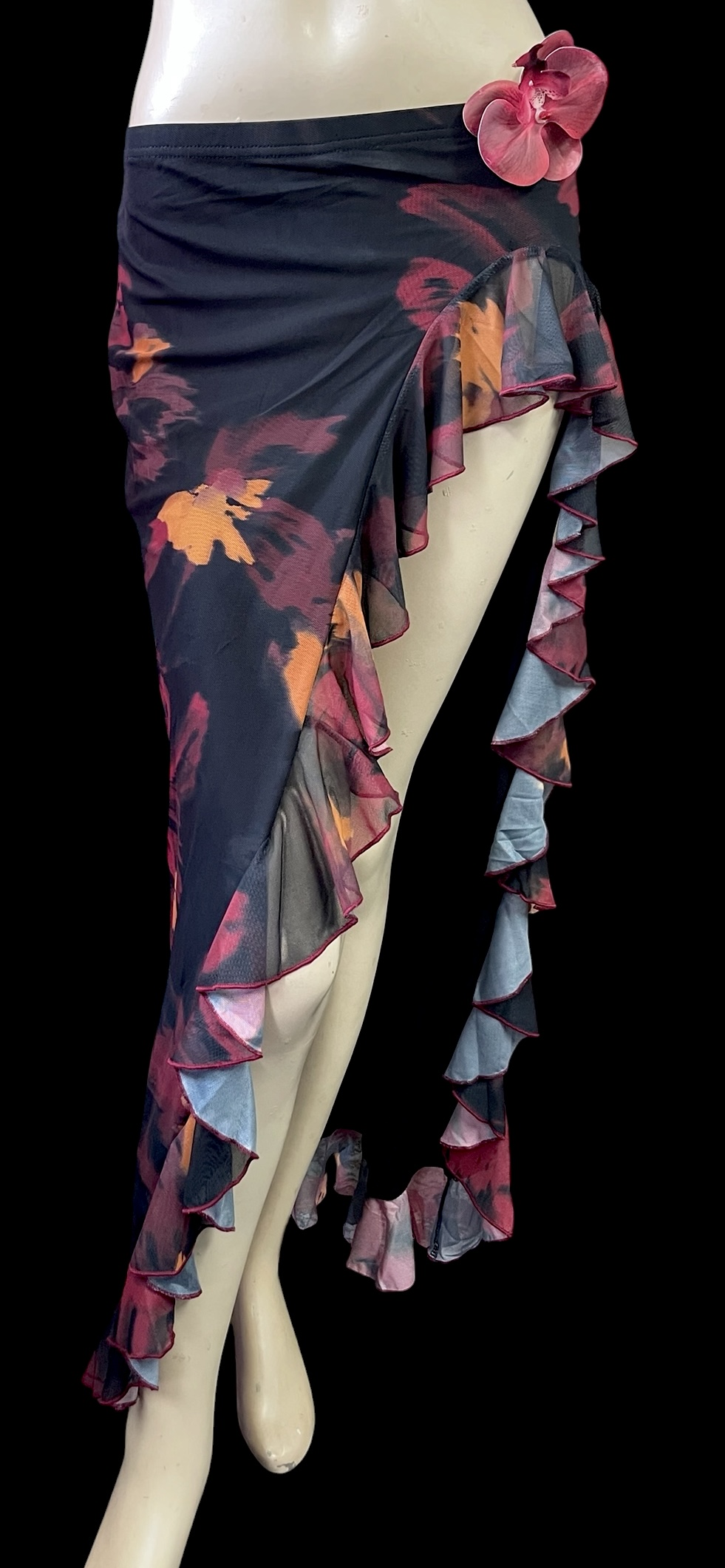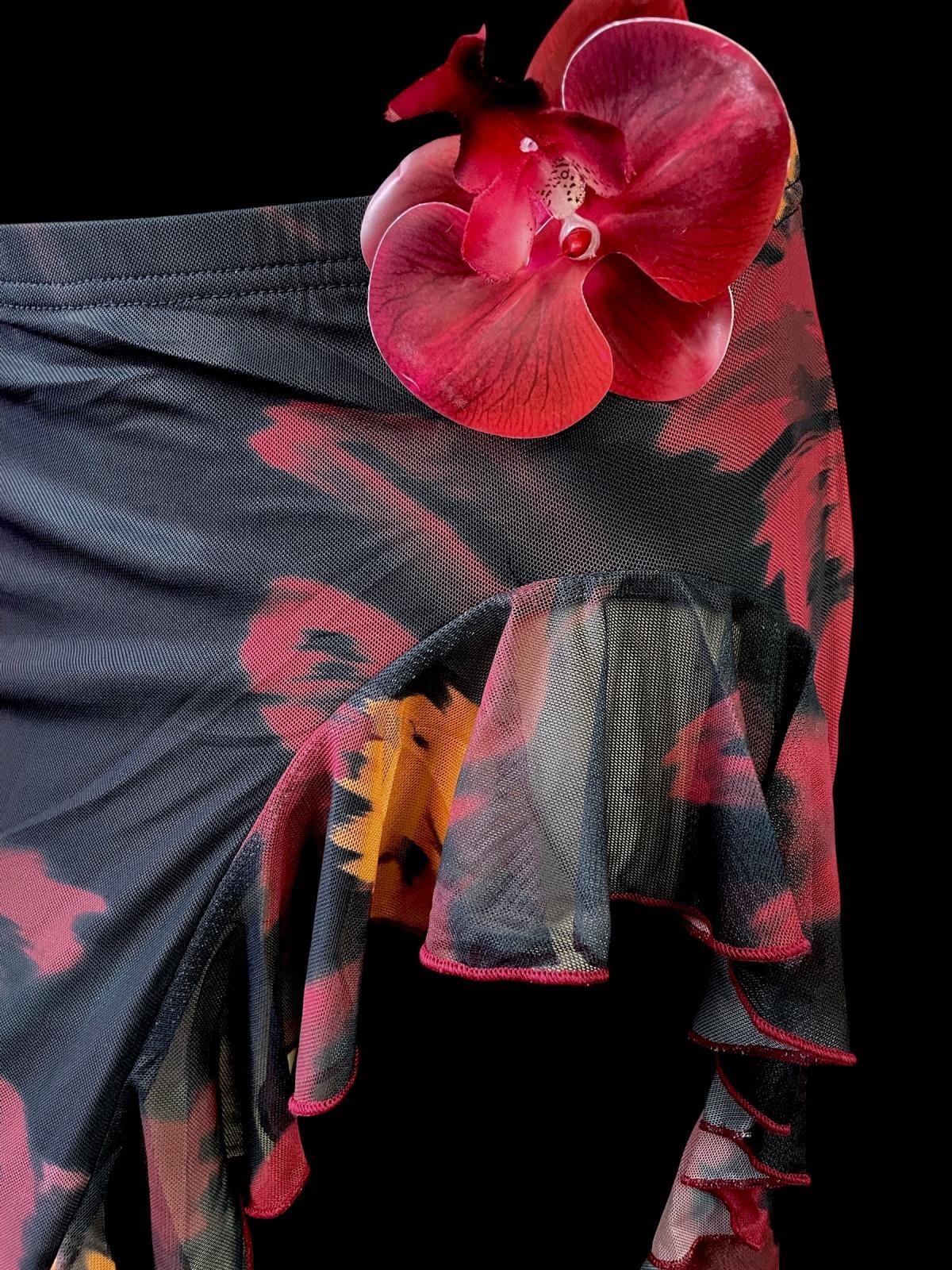 ストレッチフリルスリットスカート☆Black red flower☆