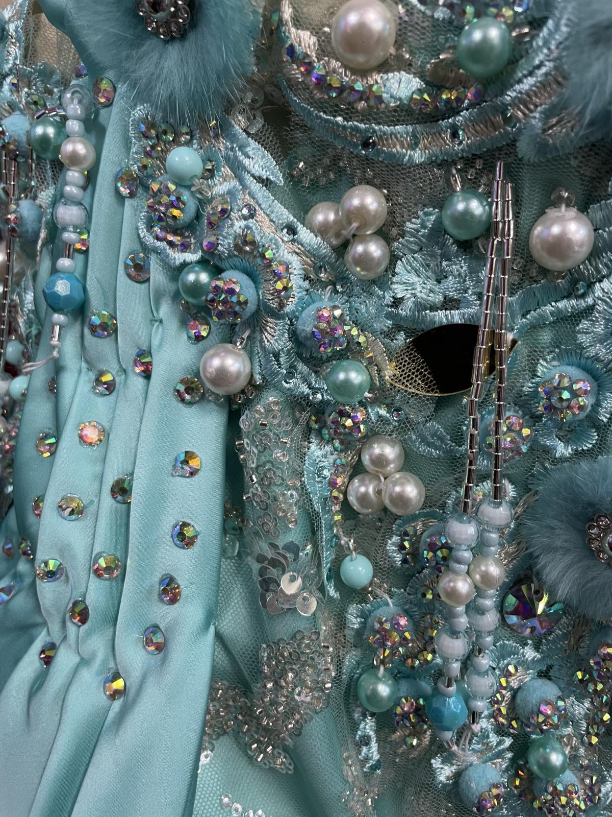 素敵なイメラルドグリーンの優しいパステルカラーが舞いを美しく演出してくれます。